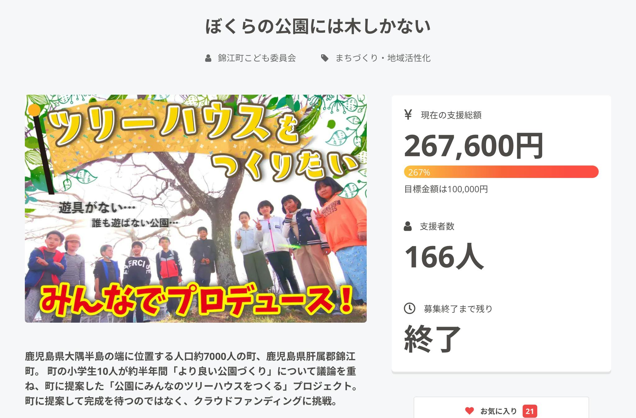 267,600円(267%)ものご支援をいただくことができました。