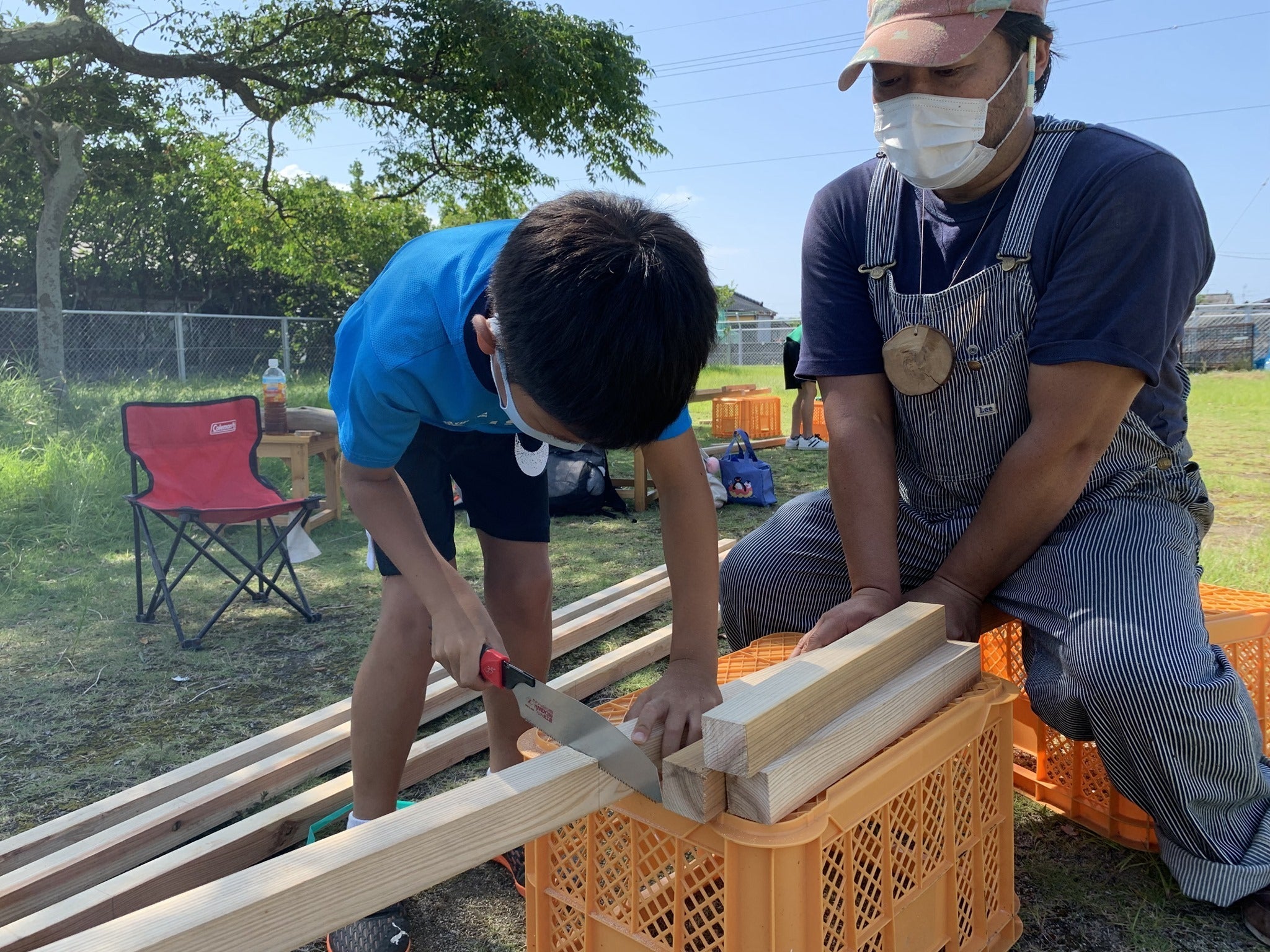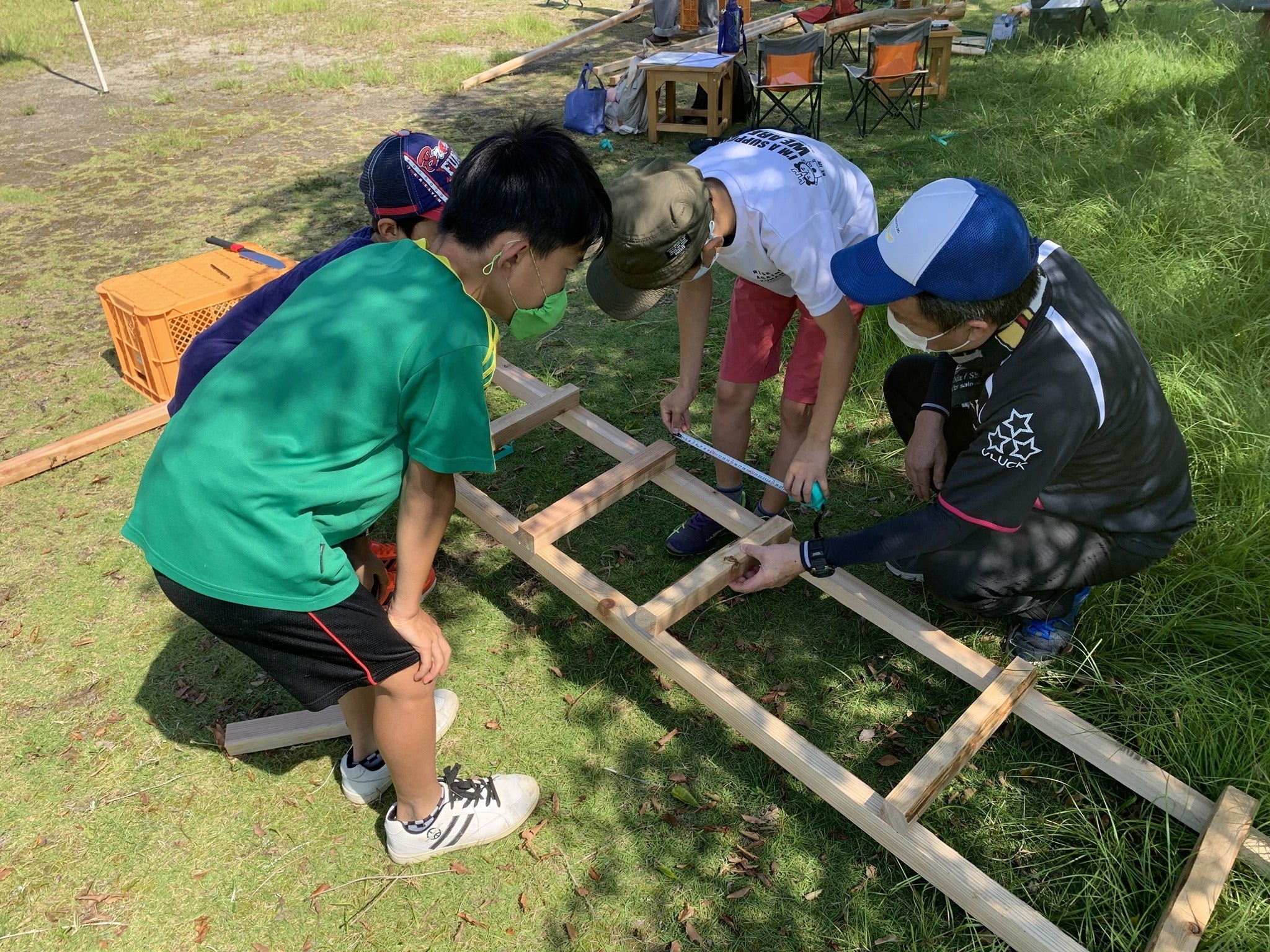 特に昨年参加した子たちはインパクトドライバーの扱いにも慣れていてあっという間に立派なハシゴが完成しました!