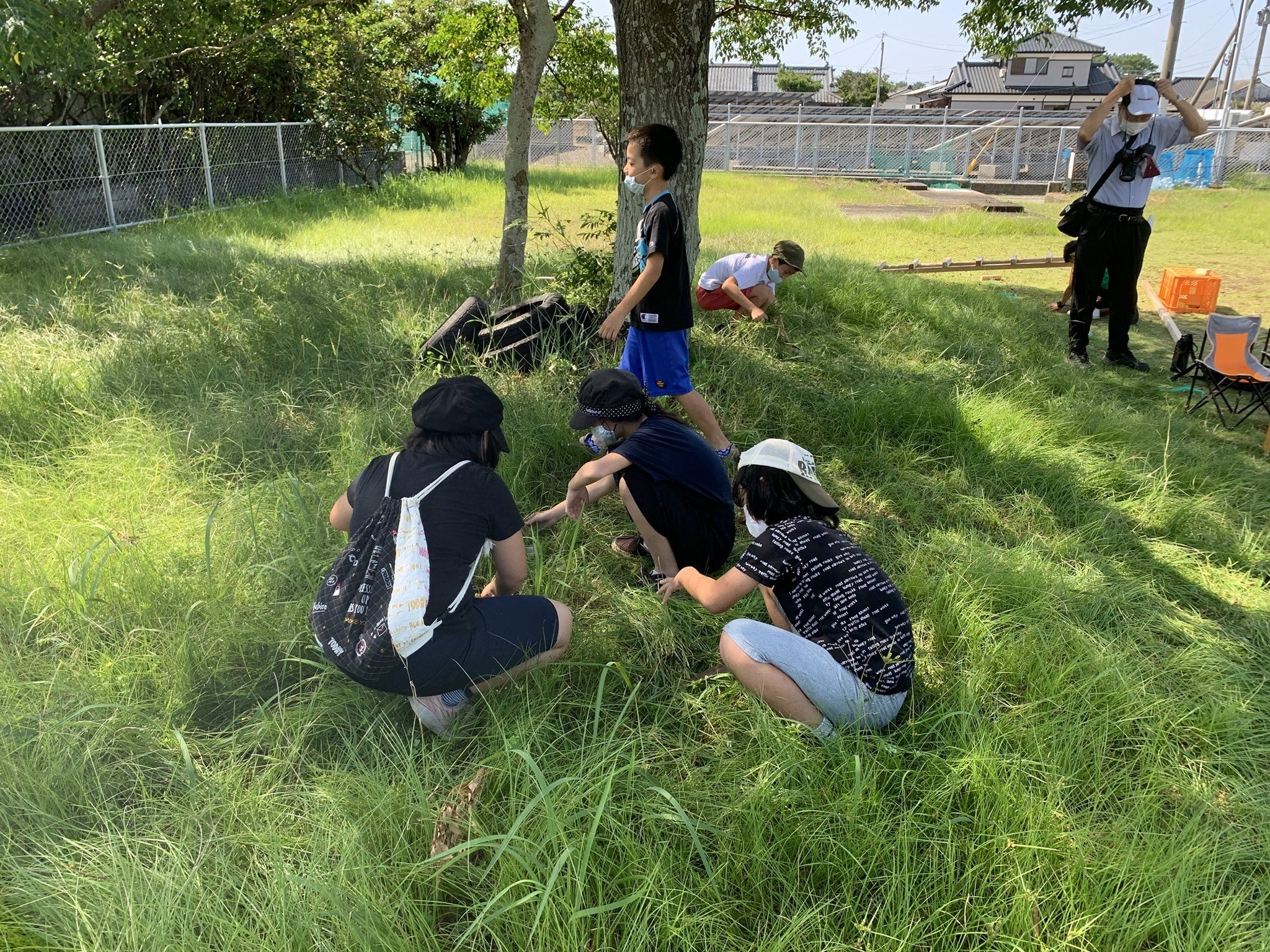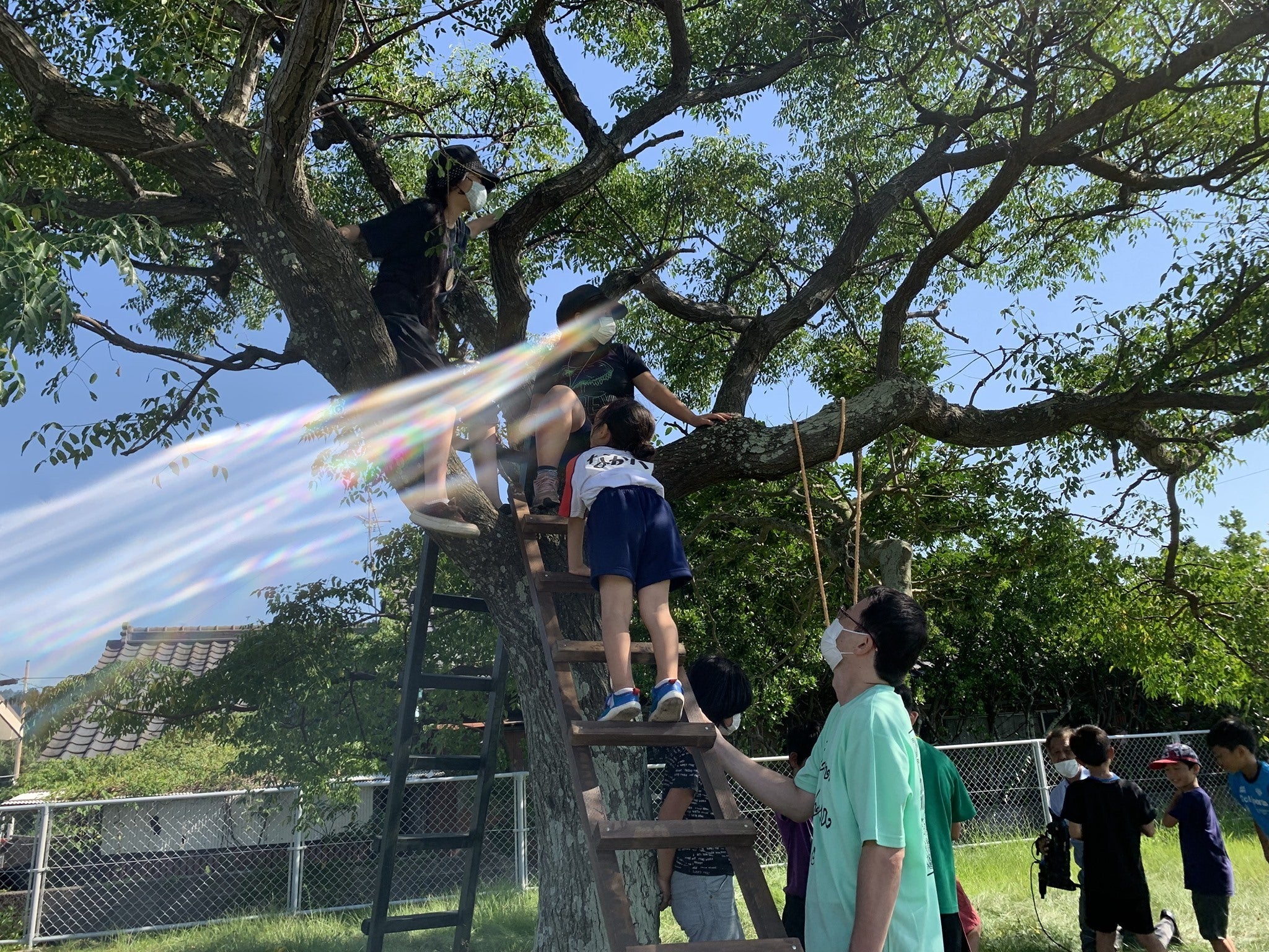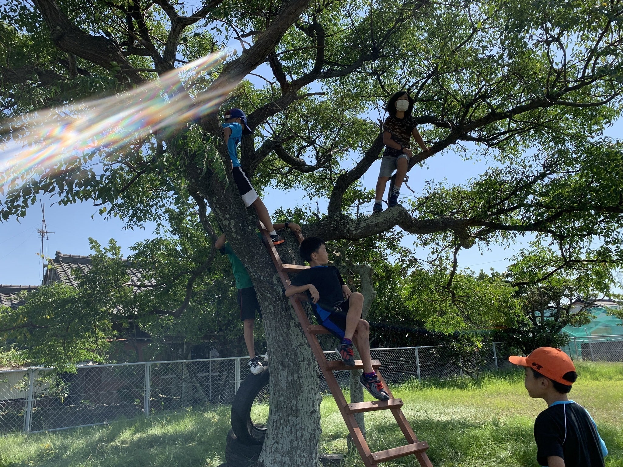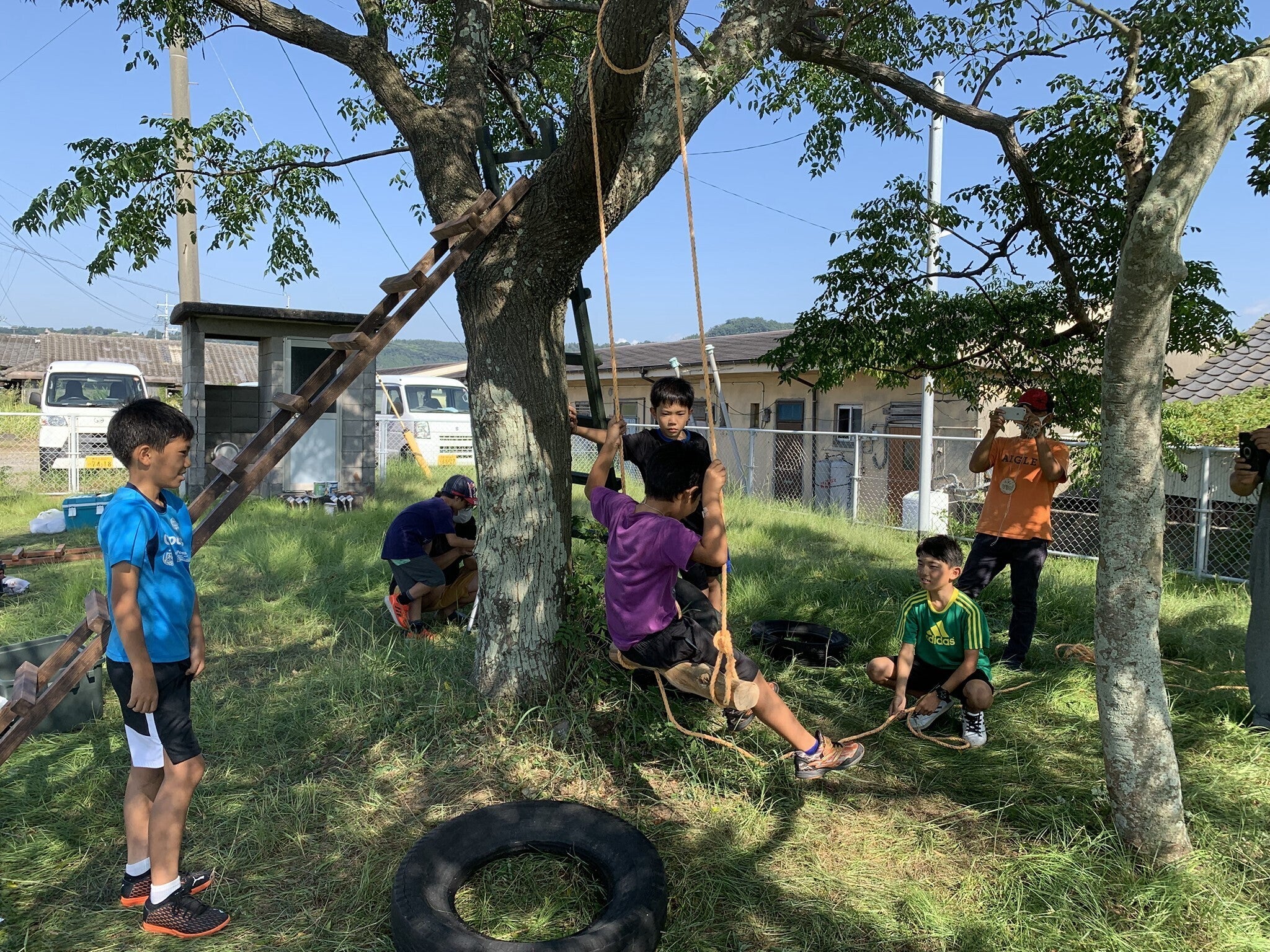 ↓その後何も言ってないのに、ハシゴで木登りする前に木の下の雑草を刈り出す子どもたち、、かわいい、、