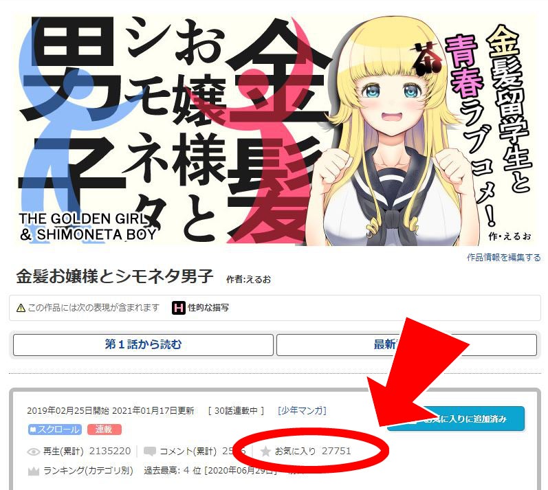 web漫画『金髪お嬢様とシモネタ男子』の連載投稿を継続させたいのです。