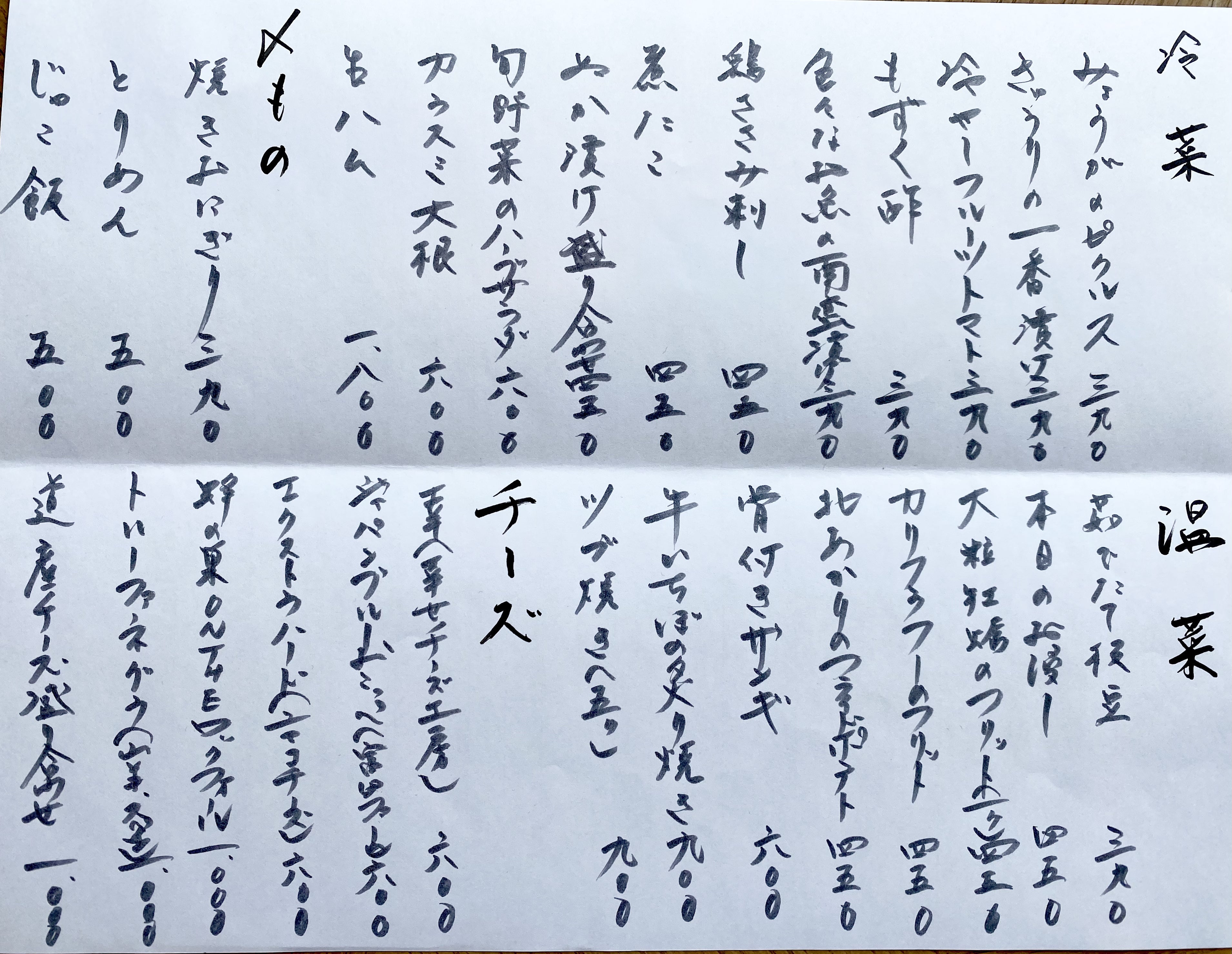 勿ノ論メニュー