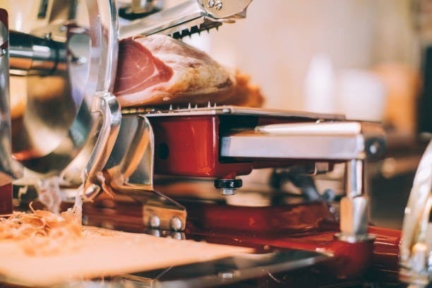 手動のスライサーで一枚一枚丁寧にスライスした生ハムは、