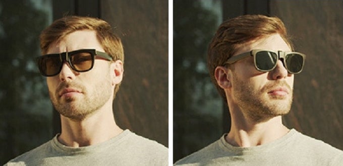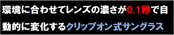 erinomainenサングラスは暗い場所ではレンズの色は薄く、明るいところではフレームに内蔵されたセンサーが反応し、わずか0.1秒で自動的にレンズの色が濃く変化する自動調光機能付きサングラスです。