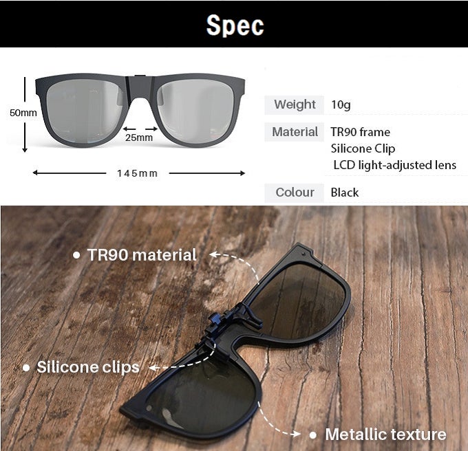例えば、ドライブ中暗いトンネルを走行している時にはレンズは薄く、トンネルを抜けた明るい場所ではレンズの色が自動的に濃く変化します。