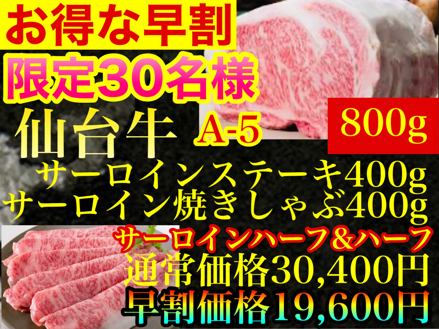 【仙台牛極上サーロインハーフ&ハーフ】【早割限定30名様】