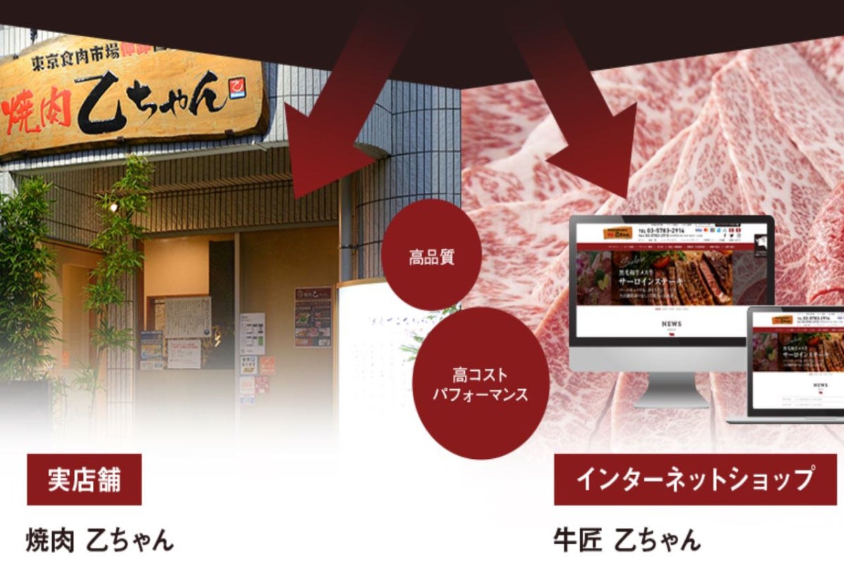 お肉のオンラインショップ「牛匠乙ちゃん」を経営している乙川畜産食品株式会社は、直営の焼肉店「焼肉乙ちゃん」を都内で3店舗経営しています。