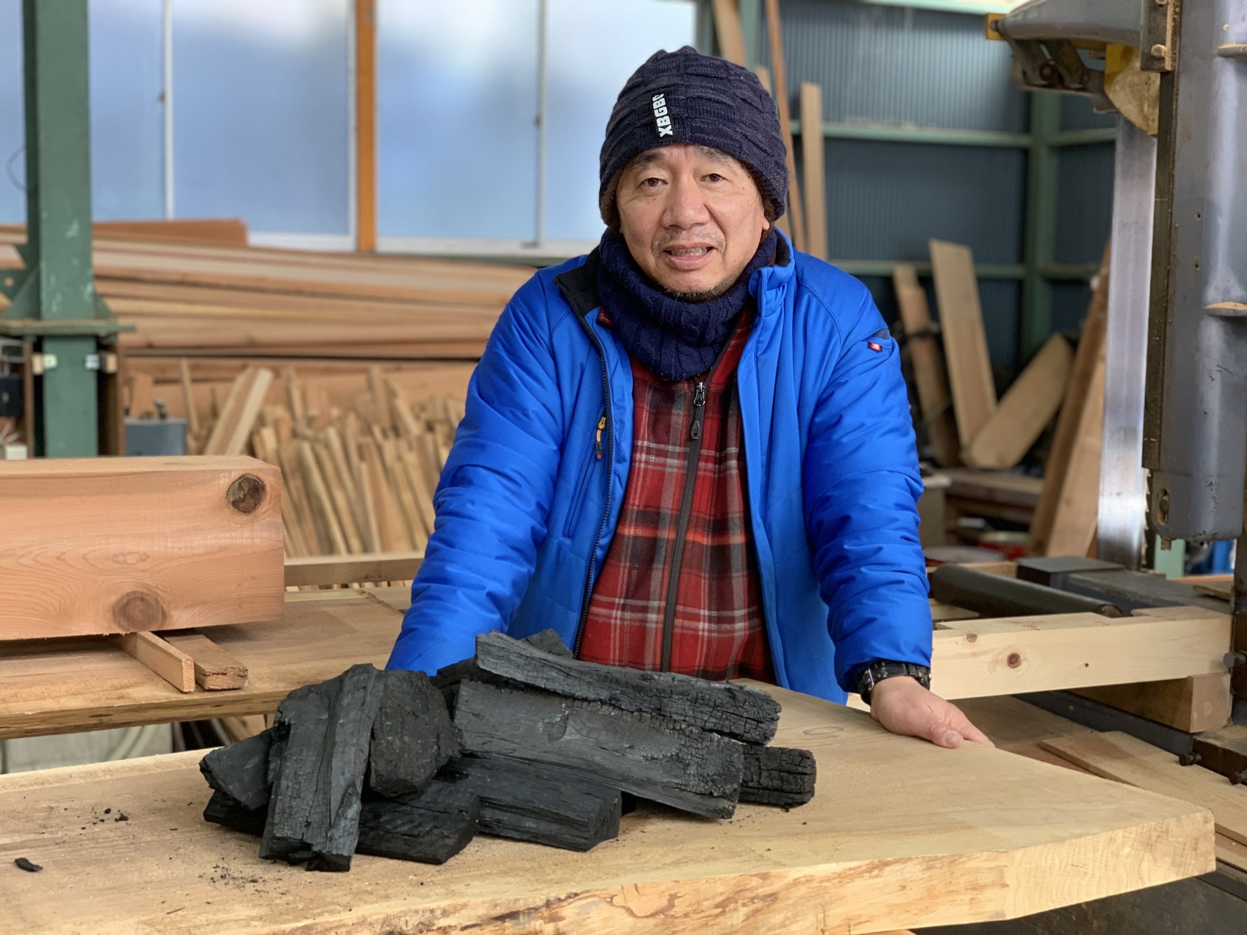 「タチキカラ」の杉野賢治です。愛知県豊田市の旭という町で、炭やき人・木こり人・木挽き人として働いています。