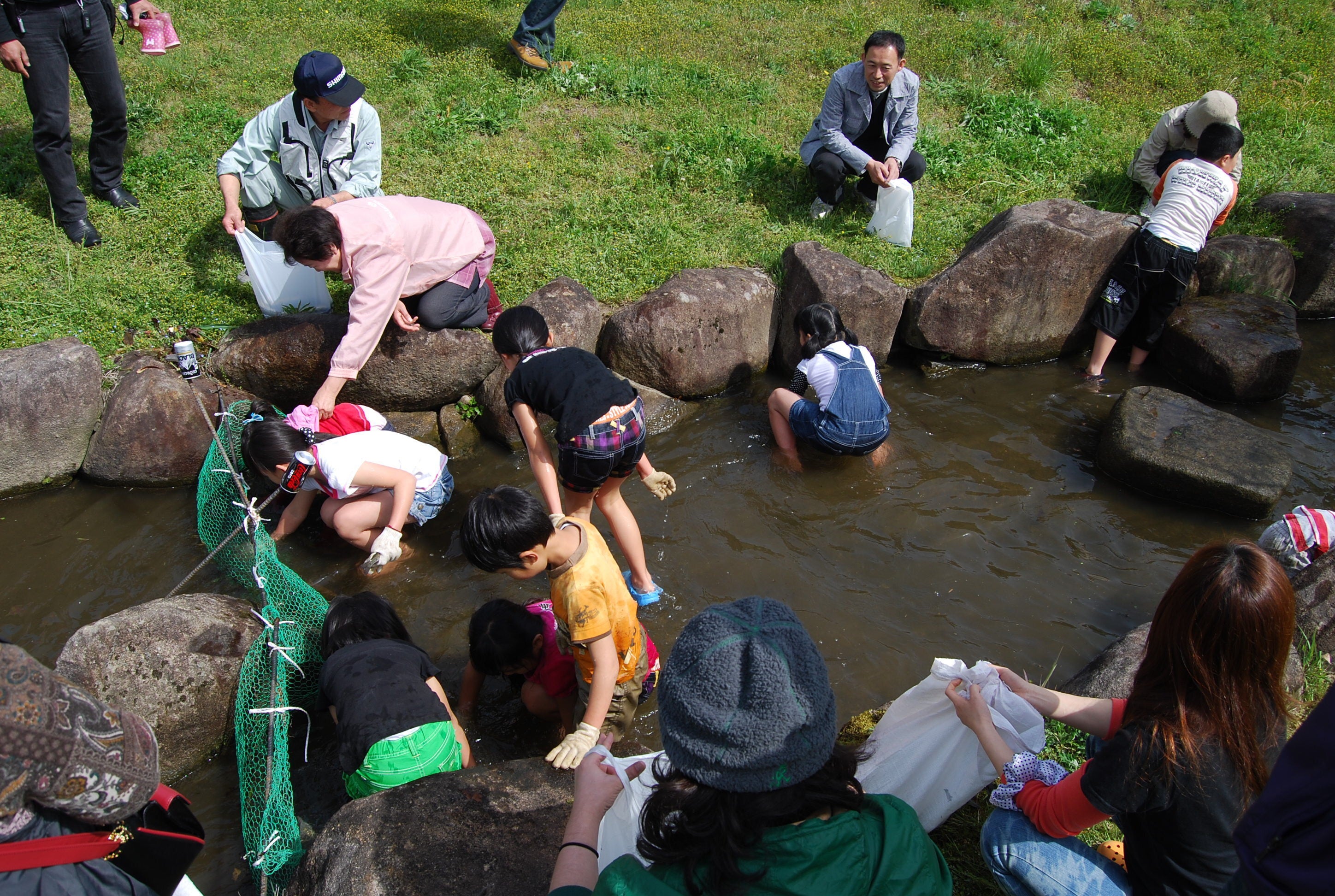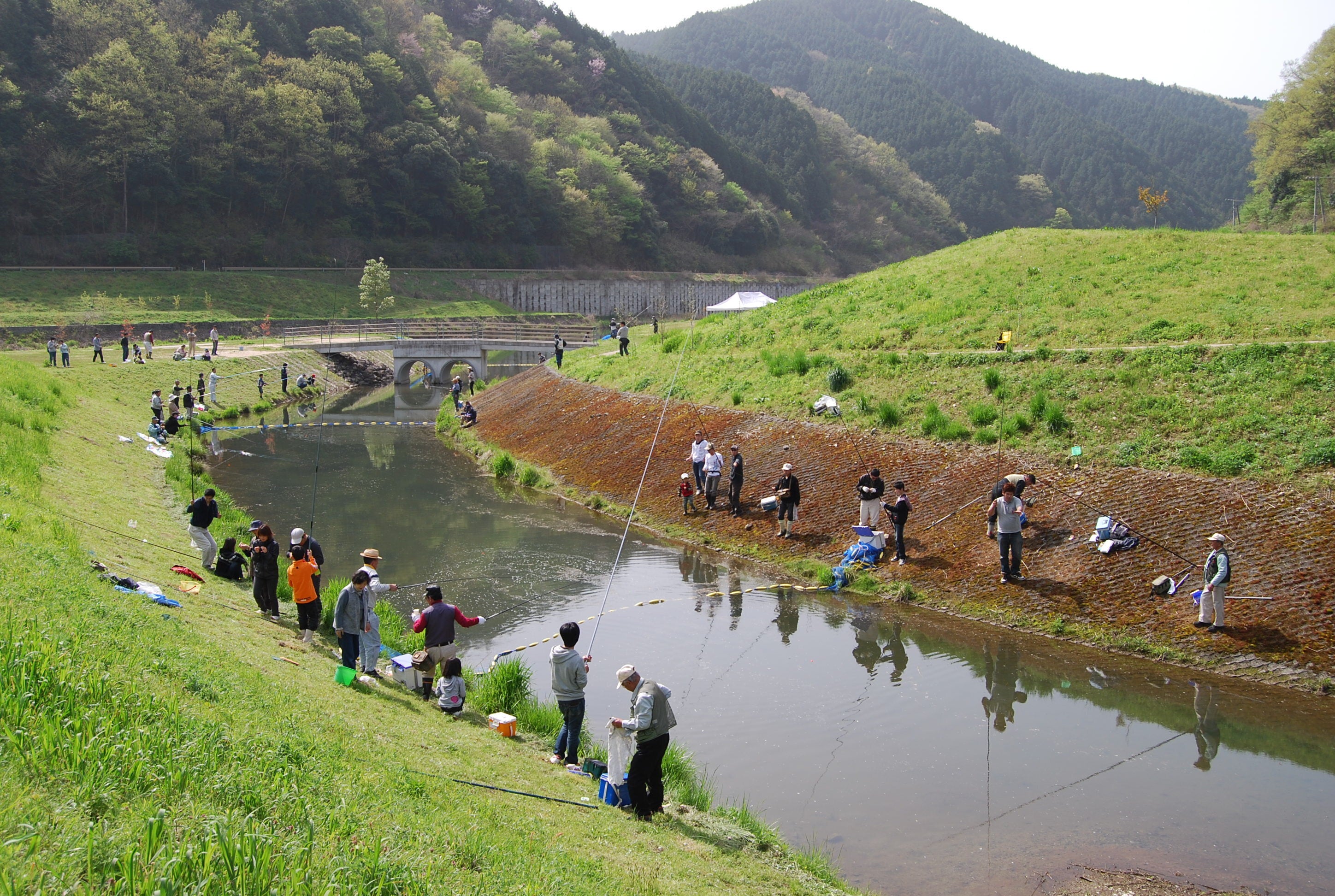 2年に1回のペースで川を堰き止め、マス釣り大会を開催しています。大会を通して、田総川やそこに住む生き物を身近に感じてもらうことを目的に実施しています。