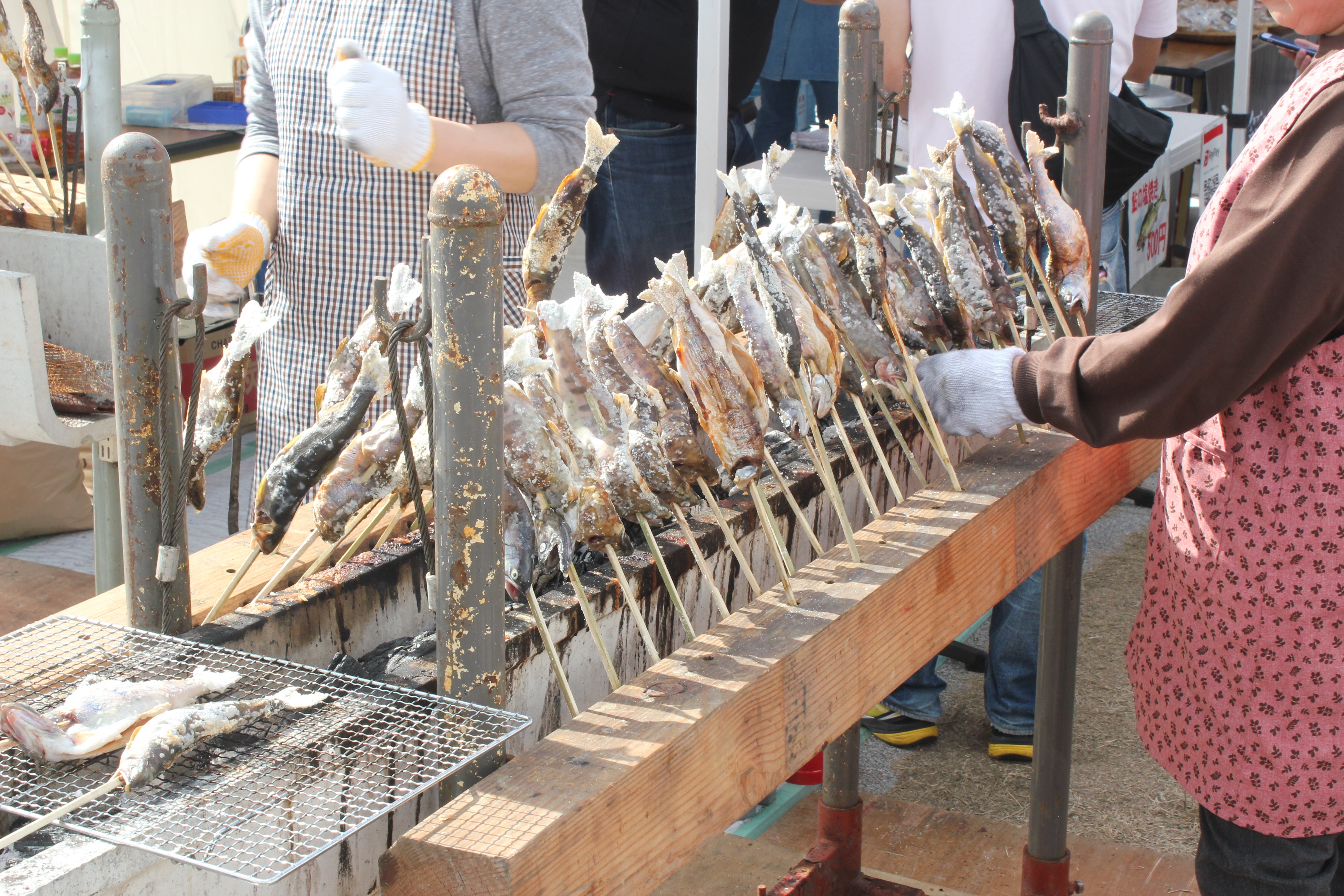 ※写真は、尾道市内で出店した際のヤマメの塩焼きです。
