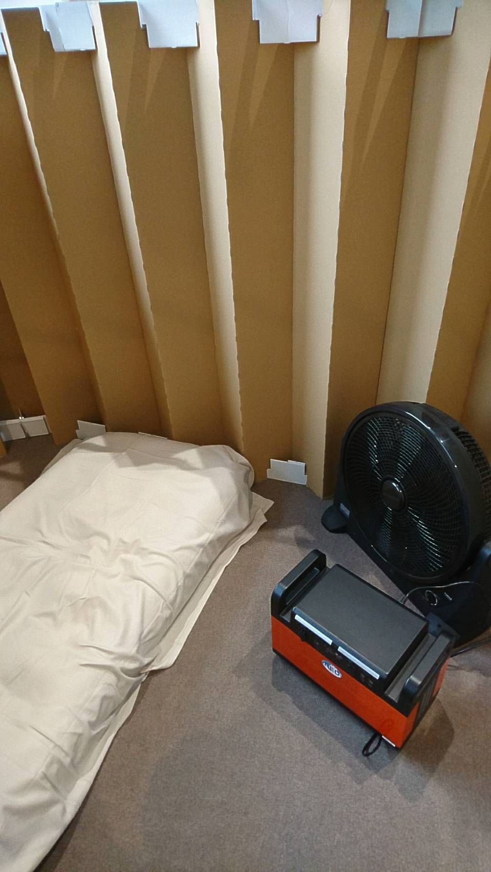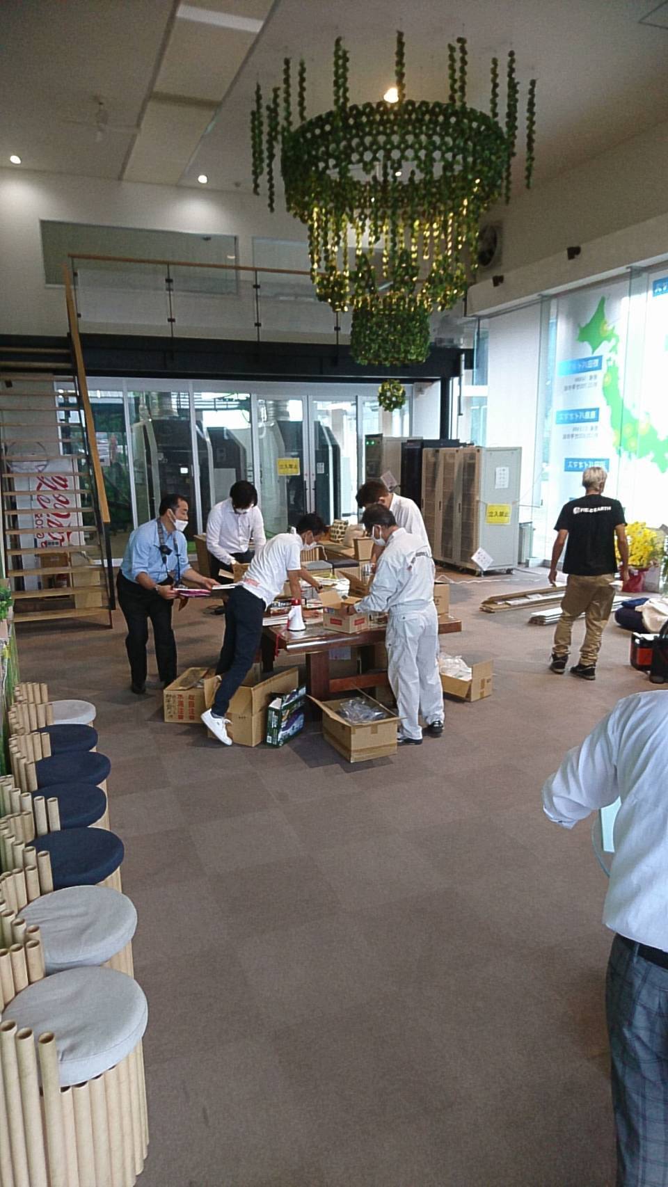 あわせて避難者の方を施設内に受け入れる際に、滞在いただくためのパーテーションやベッドの設置から、食事等の備蓄品提供までを速やかに行えるよう手順の確認を行いました。