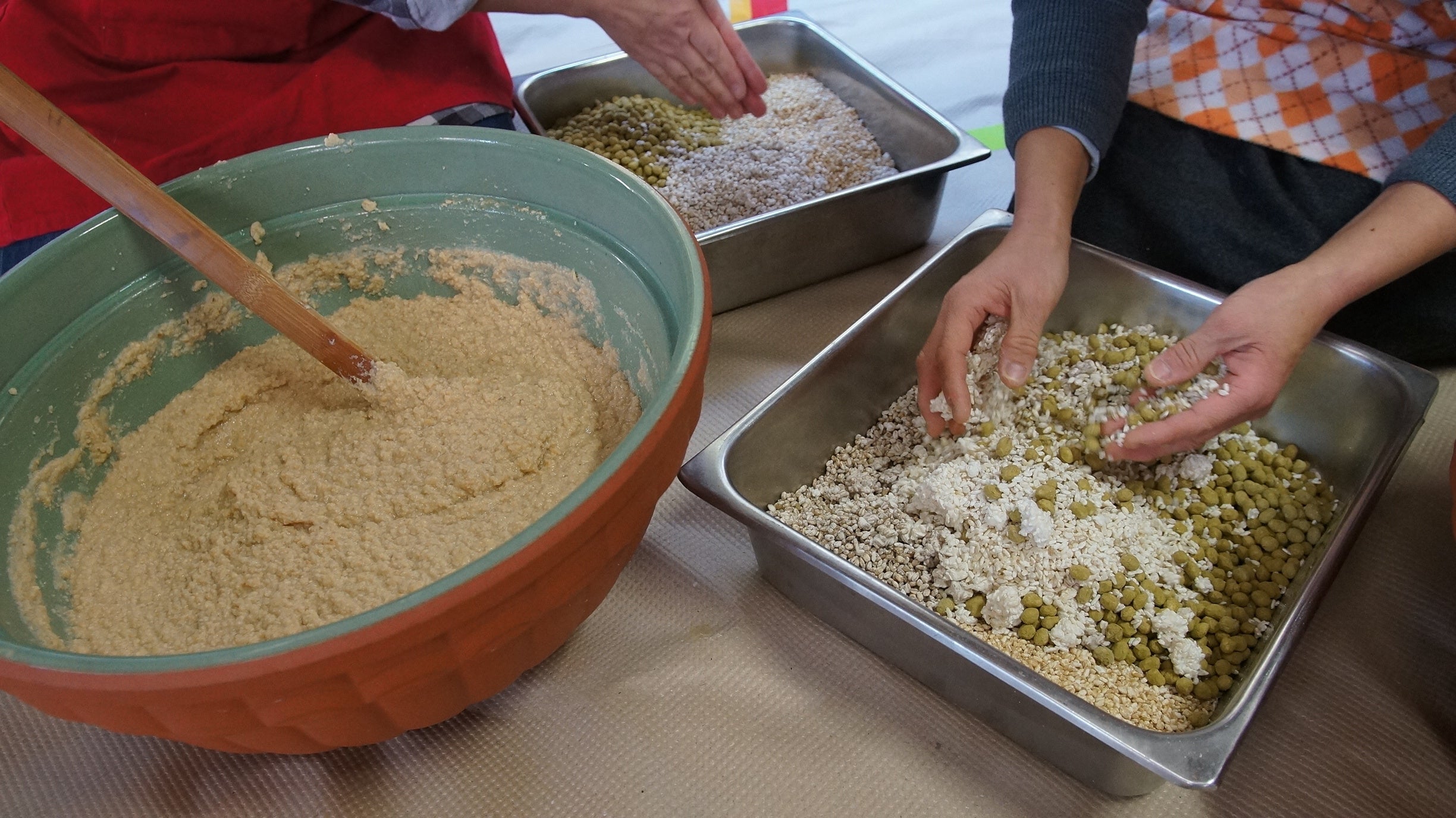 A:季の野の台所では、玄米糀、白米糀、大豆麹、大麦麹、小麦麹 と5種類の麹を用意しています。その中から、お好みに合った麹を使って味噌作りを楽しんでいただきたいです。