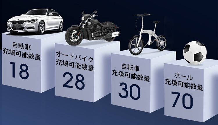 「Boost Air」を満充電にすればたくさんの回数の空気を入れることが出来ます。大容量バッテリーなので自分の分が終わったら家族や友人ともシェアしてみんなの安全も守りましょう。