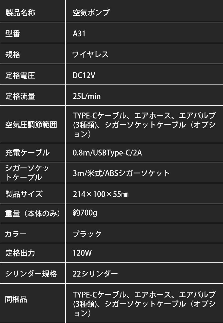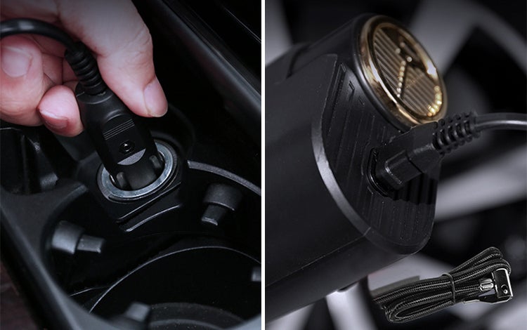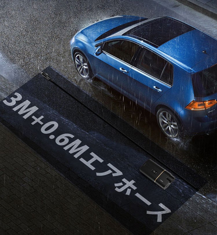 さらにクラウドファンディング限定リターンでは、シガーソケットから充電出来る専用ケーブルも付属。これさえあればうっかり充電を忘れていても安心です。長さ3mのケーブルなので、後輪に空気を入れる時にも十分に対応しております。
