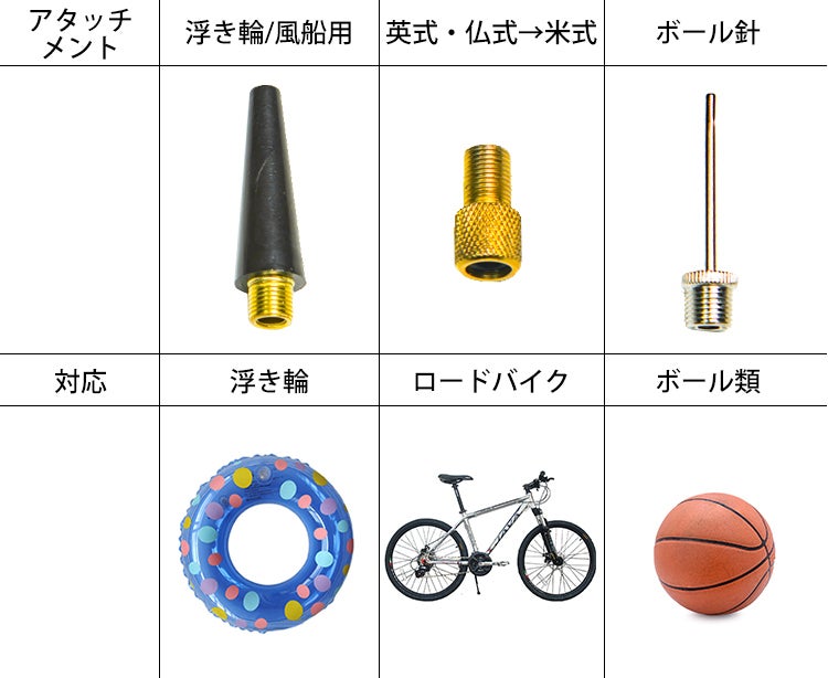 「Boost Air」には付属のバルブが3種類ついてきます。車以外にもバイク・自転車に使える英式・仏式・米式に対応した金色のバルブ、ボウルや浮き輪のための針が付いており、さまざまなものへ空気が入れられます。一家に1台あれば、お父さんは車に、お子さんは通学の自転車に、週末のレジャーにとご家族全員でお使い頂けます。