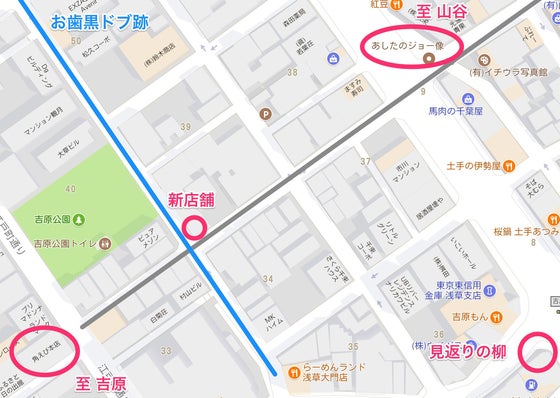 新店舗の住所は台東区千束4−39−3です。旧店舗から90メートルくらいの距離で、近所への引っ越しとなります。 新店舗の位置は、山谷と吉原を繋ぐいろは会書店街のアーケードを直進して、吉原のおはぐろドブ沿い。角海老さんを借景させて貰っているロケーションです。 かつての労働者の街、山谷。旧遊郭、吉原。そして、浅草。この「山谷・吉原・浅草」の3構造は、大都市の各地に見られます。大阪の釜が崎、飛田、新世界がそうですね。 他地域との連続性の中にある「吉原」を改めて捉え直して、広くなった店内では浅草や山谷の本もご提案できればと考えています。 また、位置するお歯黒ドブは「遊女の逃亡防止策」として紹介されることが多いようですが、寛文(1661〜1673)の頃は5間(約9メートル)あった堀幅も、明治32年の頃は3尺(約90センチ)に過ぎないものになっていました。※ 飛び越えようと思えば、飛び越えられる幅です。 寒村から幼くして売られてきた遊女たちは、教養や社会経験、技能など皆無だったでしょう。仮に逃亡できたとして、外で生きていく術があるようには思えません。彼女たちの足枷となっていたのは、むしろそうしたシステムだったのだろうと私は考え、また哀憐を覚えます。 ※参考文献:台東区役所編『新吉原史考』昭和35年