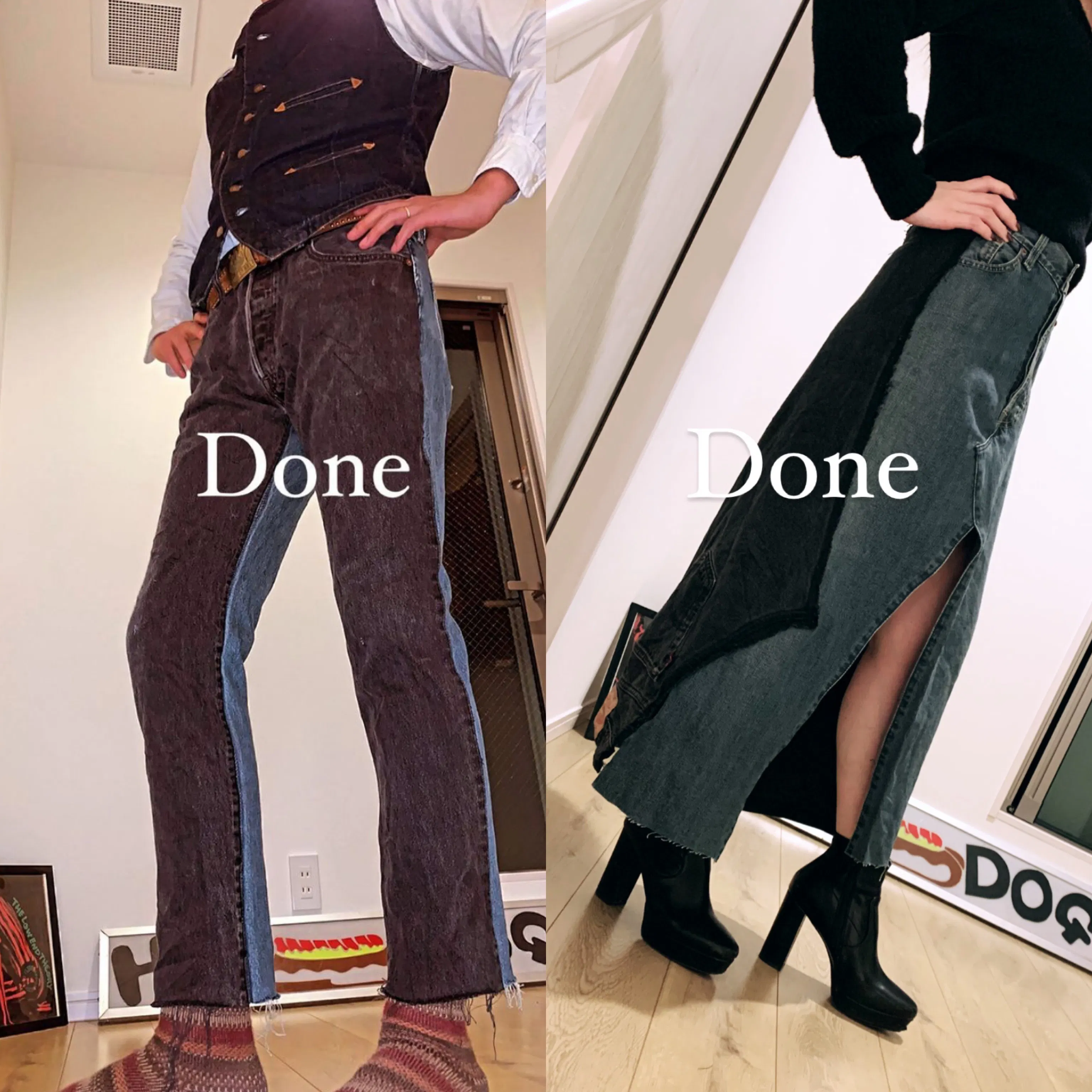 (↑初めて二人で作ったものは、デニムカーテンでした^^)