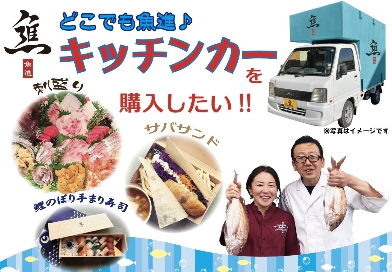 魚進がキッチンカーを手に入れれば、ラーミアよりも早く遠くのあなたの元へこの粋な刺身と惣菜を届ける事が出来る!このプロジェクトを皆で成功させよう!