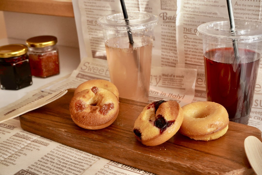 リターンとして当店でお持ち帰り用として販売させていただきますドーナツやスコーン、ジャムをお送りさせていただきます。