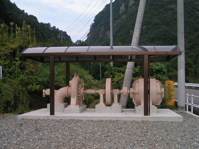 展示保管中の旧川中発電所で使用されていたタービン
