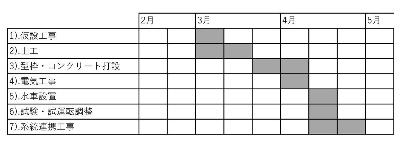 この発電事業に関する工事は土木、機械、電気工事からなり、2021年3月に着手し、4月末に完了の予定です。