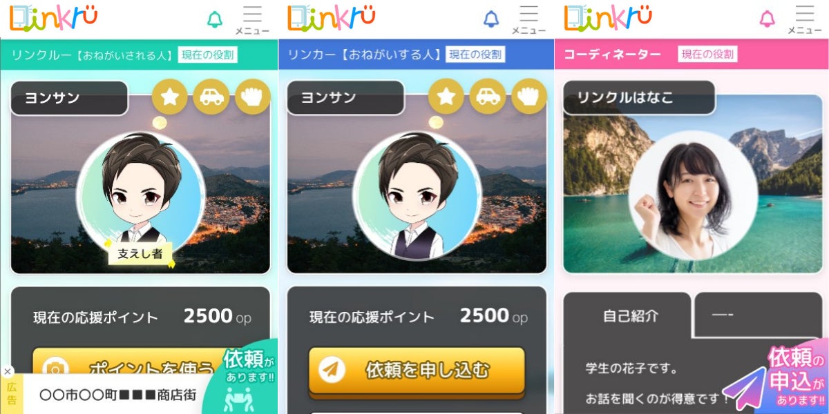 支援をお願いする側(リンカー)も依頼しやすく、助ける側(リンクルー)もゲーム感覚で楽しみながら