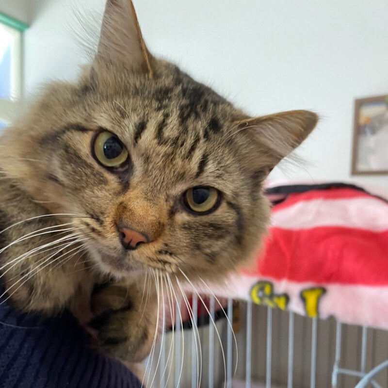 全頭そうでしたが、病院から帰る車の中ではシャーシャー怒ってたのにシェルターに着いた途端、共に育った仲間の猫ちゃんに会ってビックリして喜んだ様子でお互い確認するように二本足で立ってフニャフニャ話し合いしてました。