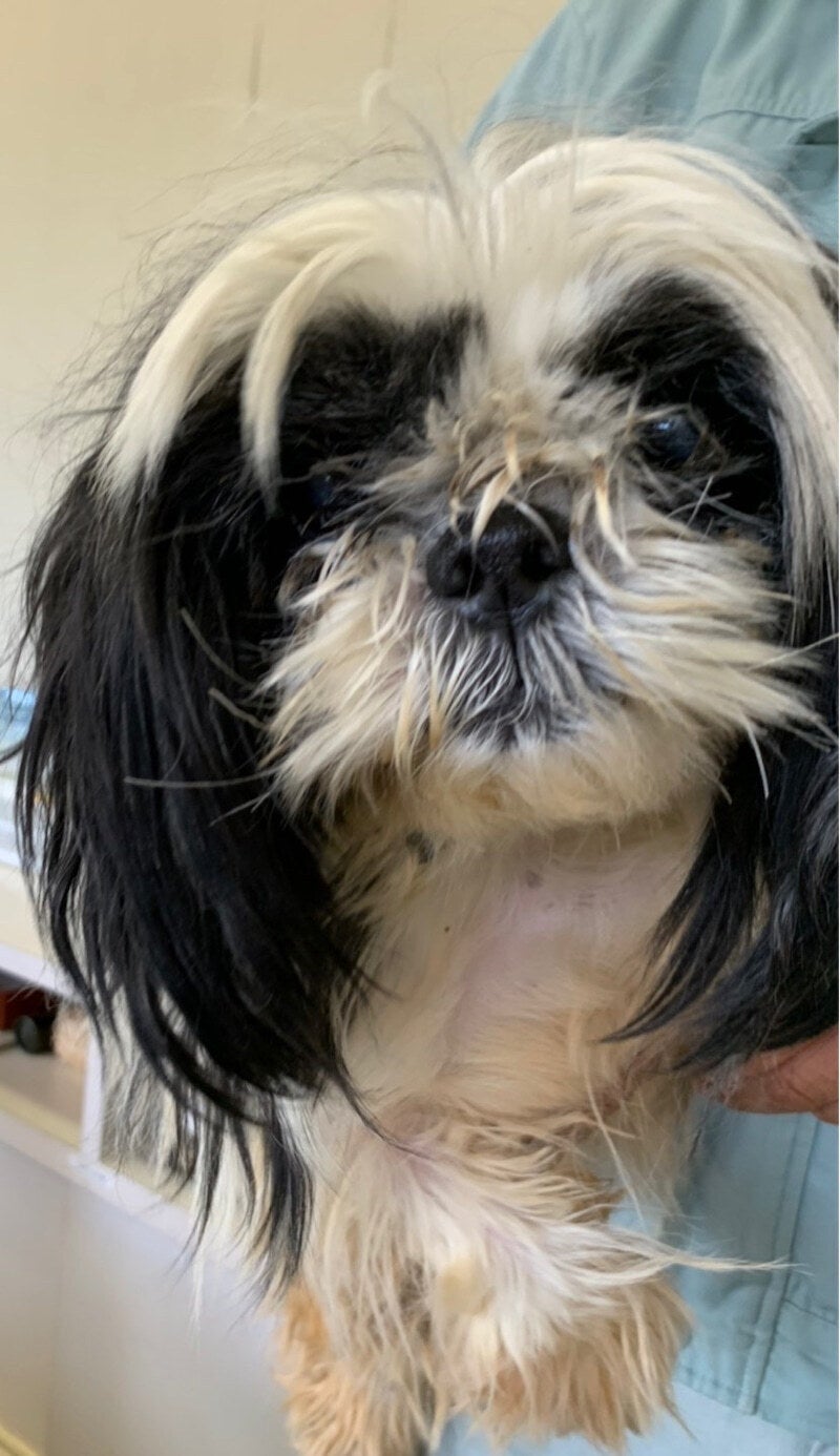 線路付近を元気なく歩くシーズーを保護した方よりメールで保護依頼がありました。出血しているそうです。