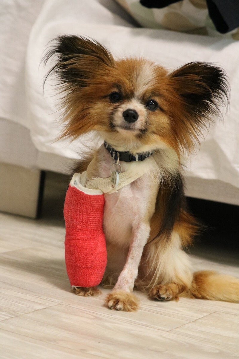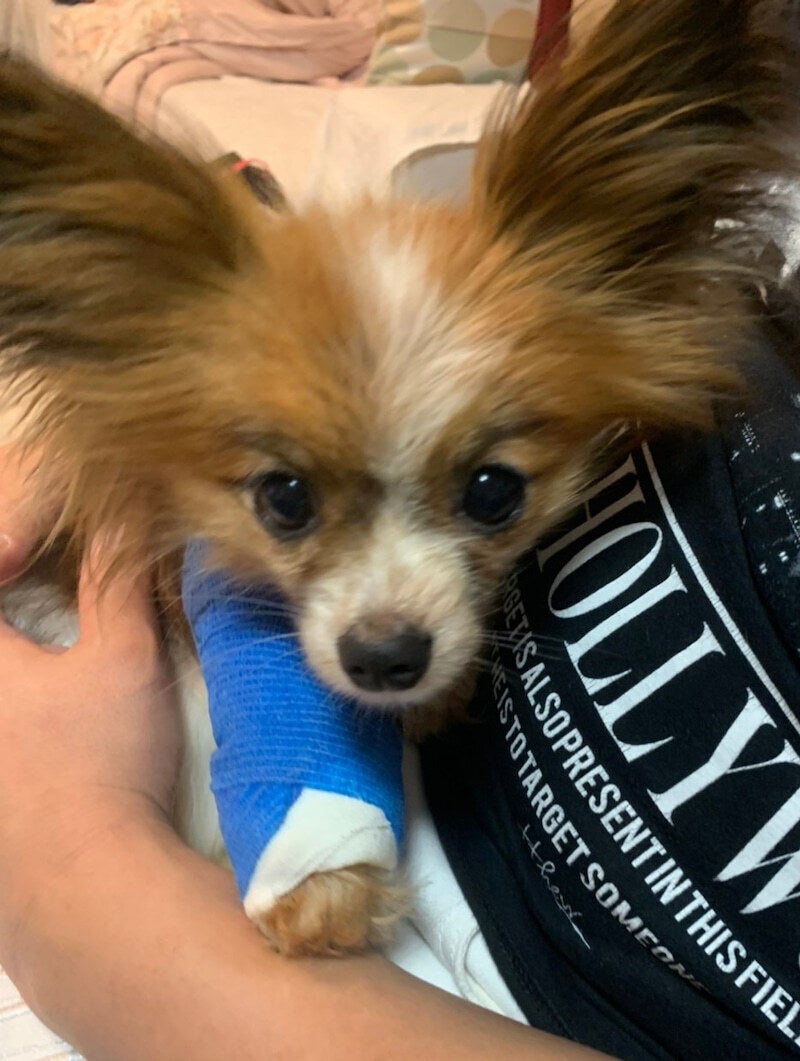 右前足の橈骨尺骨骨幹部陳旧性骨折と左前足の変形癒合があり、まずは右前足の手術をし、現在ギプス固定中です。