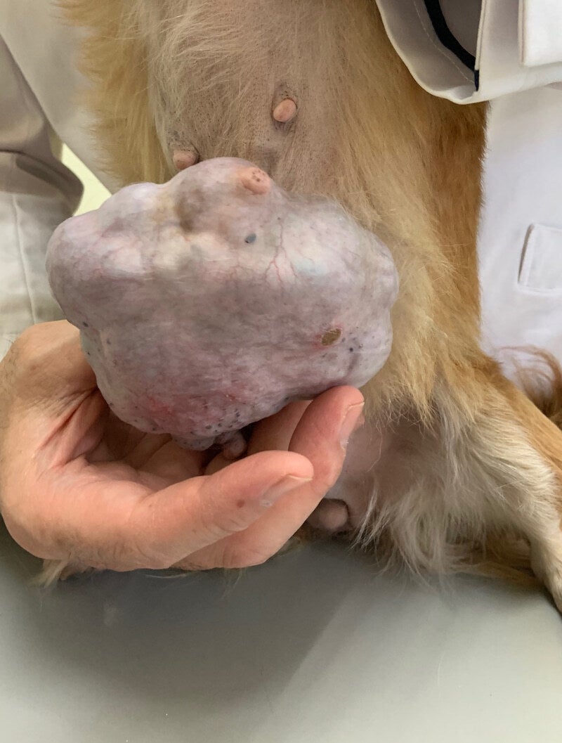 無数の乳腺腫瘍と大きく肥大した腫瘍