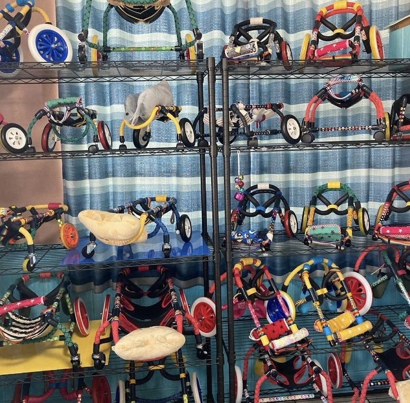 本日早速車椅子を合わせにスタッフとキースちゃんとお邪魔させていただいたら可愛い車椅子が沢山!