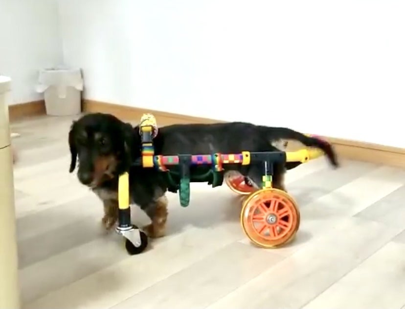 尻尾ブンブン振って車椅子もすぐ乗りこなしていました。
