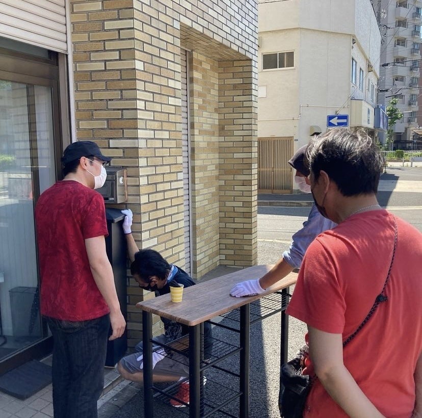 当日参加出来るスタッフ総出で、朝から3ヶ所に分かれて荷物を新シェルター兼ケア施設のSORA本部に運び入れ設置作業です。スタッフ男女ともに早朝から集まり力仕事の日となりました。