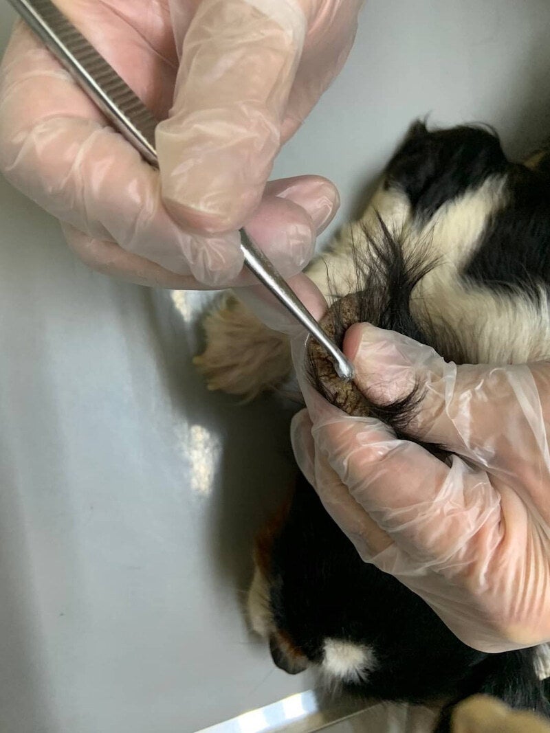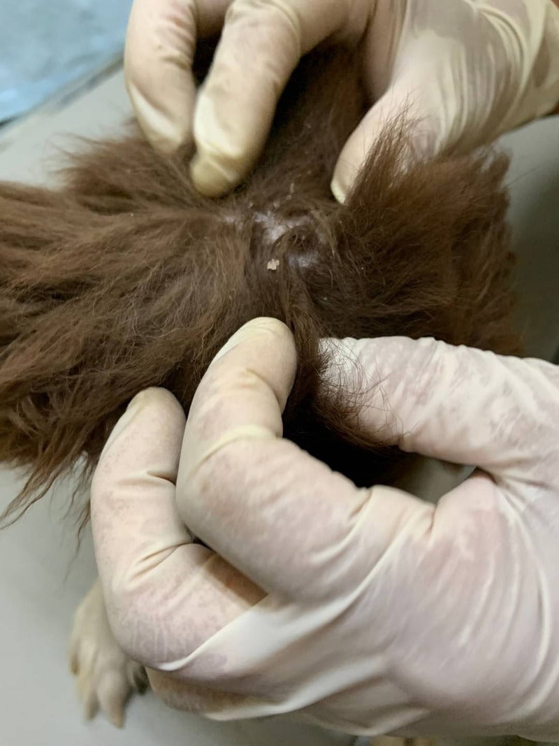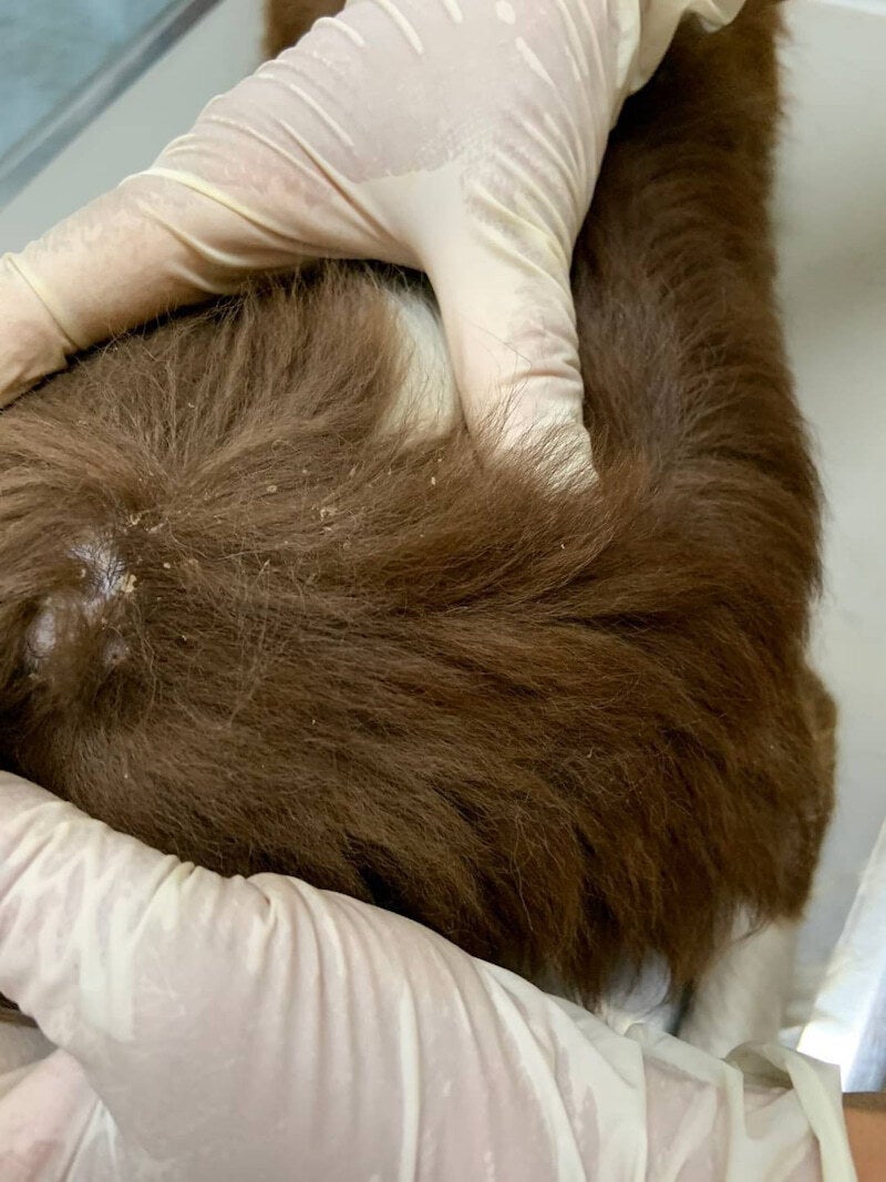 投薬だと完治までに時間を要する為、イベルメクチンとコンベニア注射を接種。