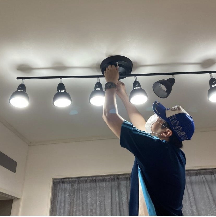 今回は男性スタッフのプロ職人さんが大工仕事等を丁寧にしてくれます。あっという間に設置完了。感謝です^ ^