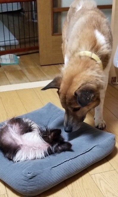生まれつき障がいがある小さなチワワちゃんにもとっても優しい、いそろく君。