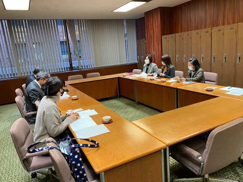 愛知県庁に連合会で伺い、衆議院議員の重徳和彦議員や愛知県議会議員の谷口知美議員のご尽力もいただきながら生活衛生課と愛知県動物愛護センターの職員さん方と何回も話し合いを重ねてきました。