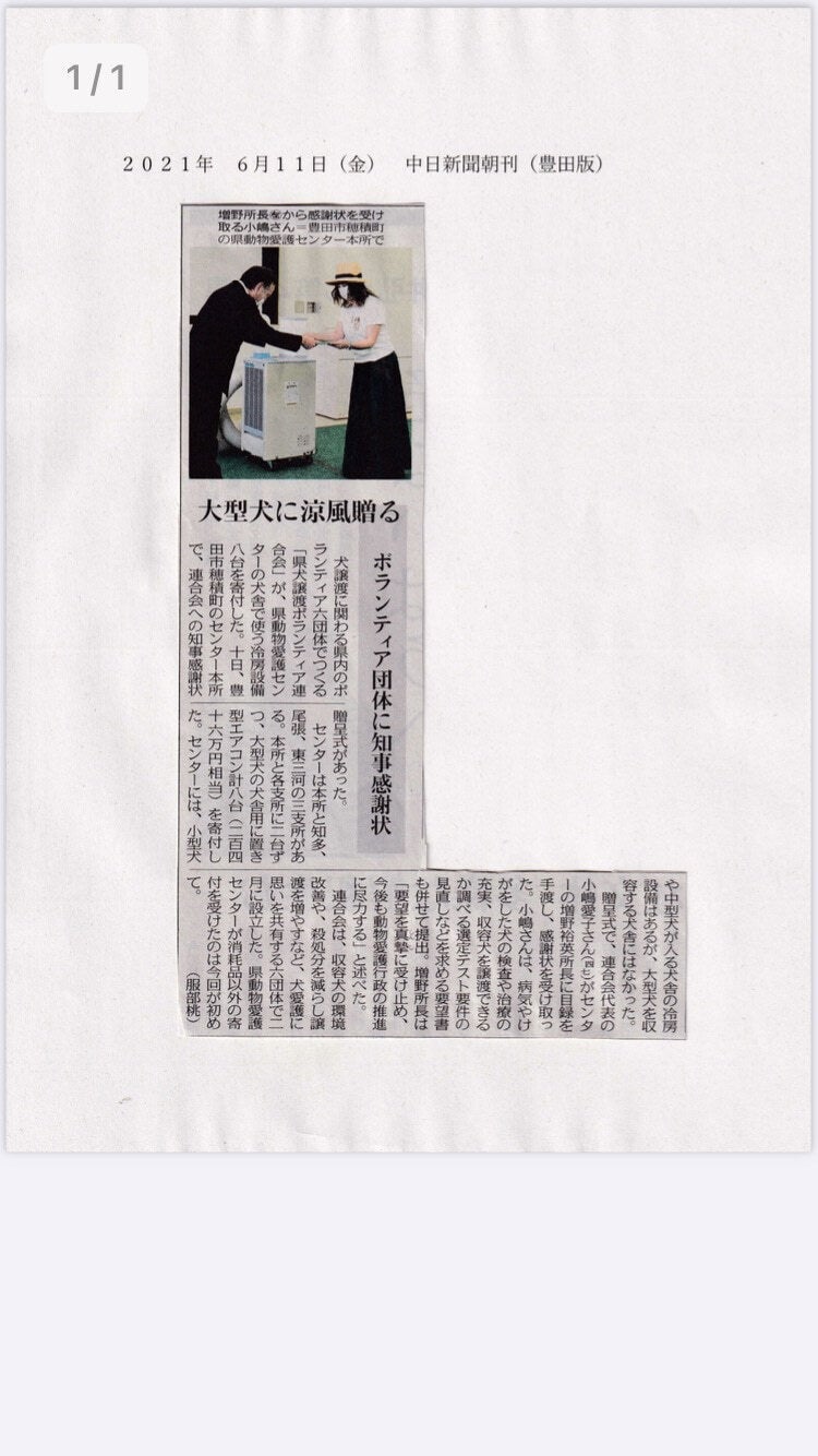 本日はFDTV愛知県犬譲渡ボランティア連合会のご報告です。