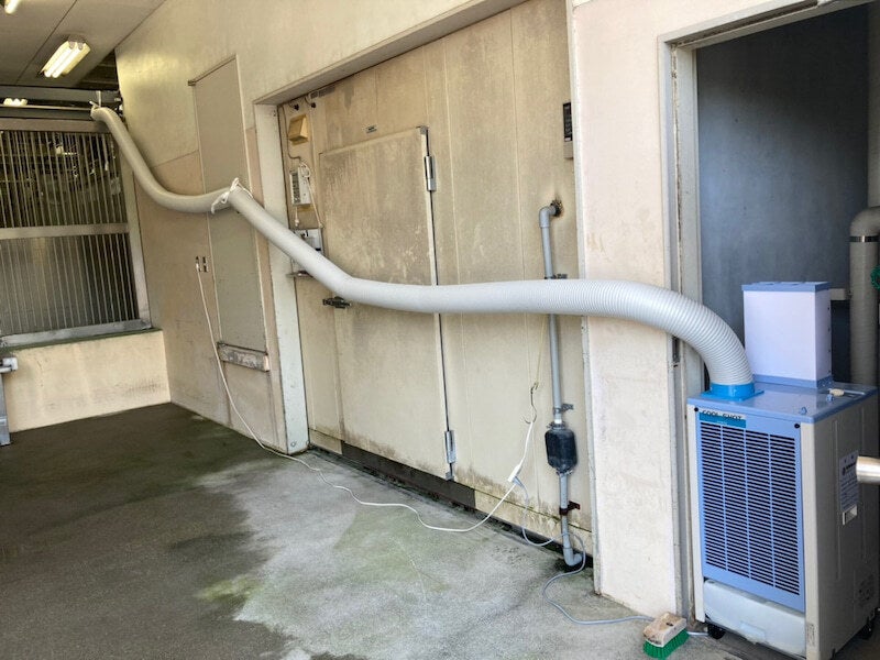 最初、連合会で色々と相談しながらスポットクーラー設置に向けて、SORAの里親様でもある協力者様のお力も借りながら、センターへ電気設備の視察に行ったり、