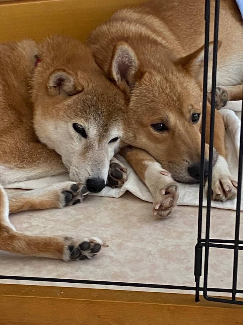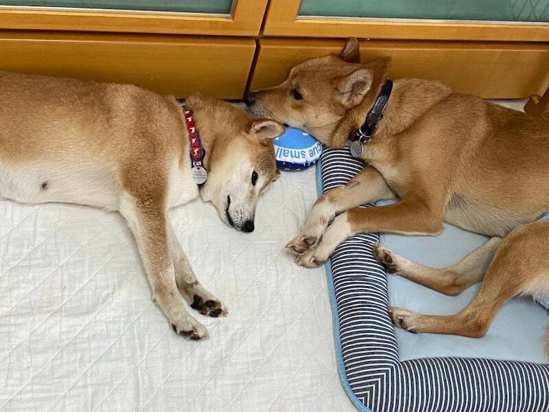 元々保護前は外でしか生活していないだろう2ワンちゃんが、リラックスして過ごすようになりました。