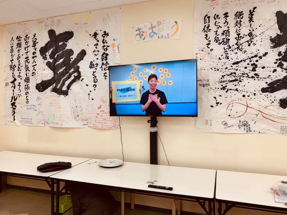 「オンライン笑学校」が映し出され、