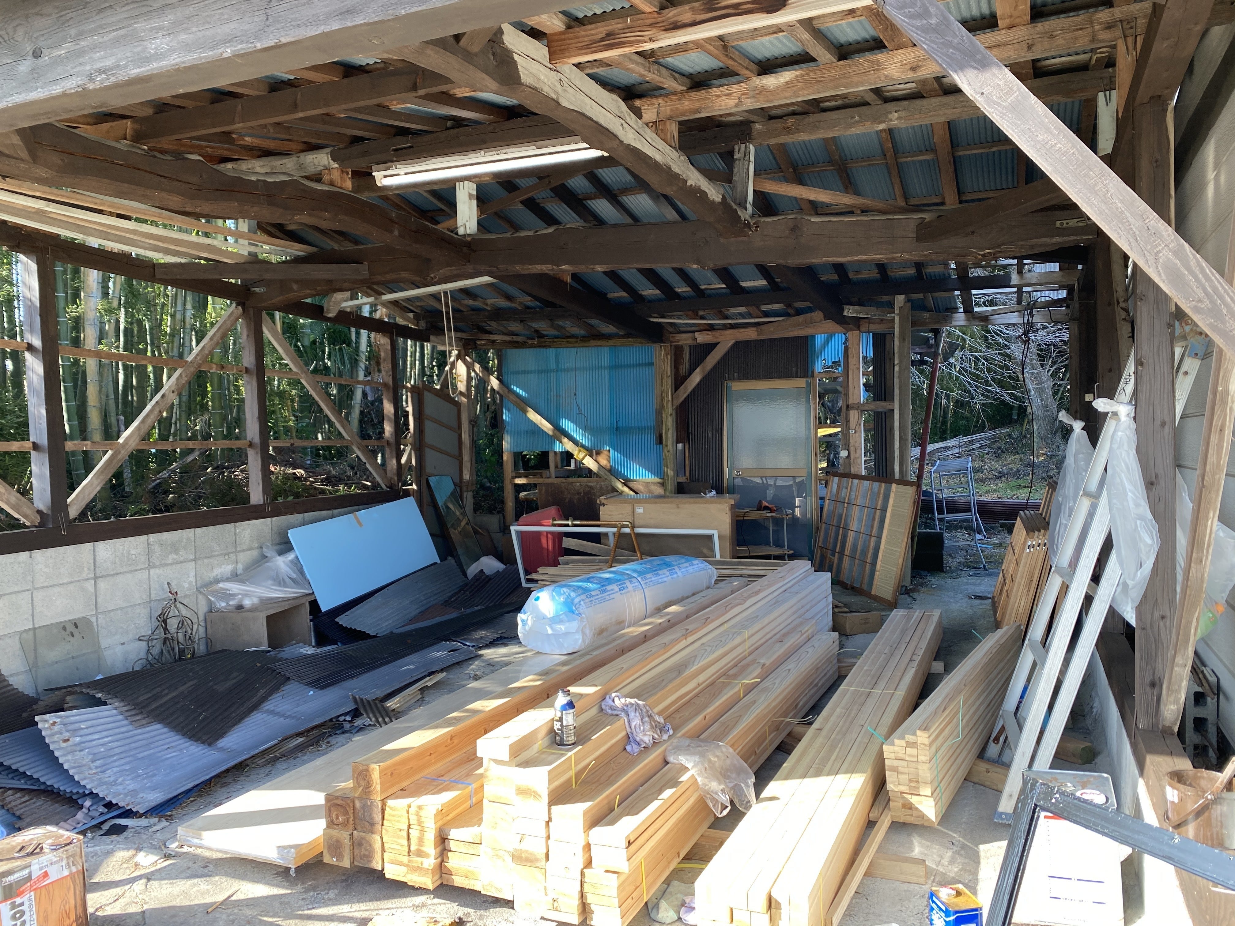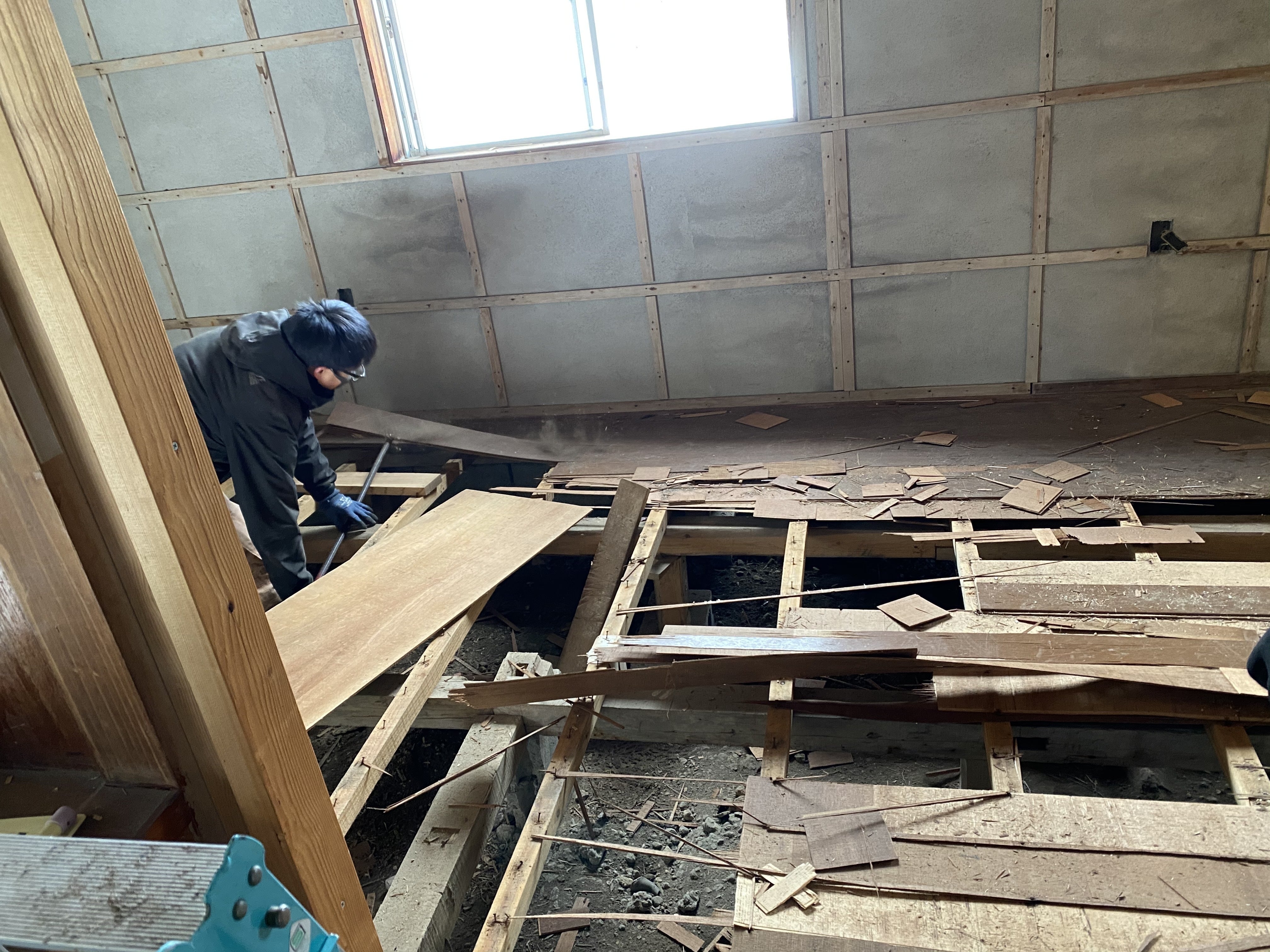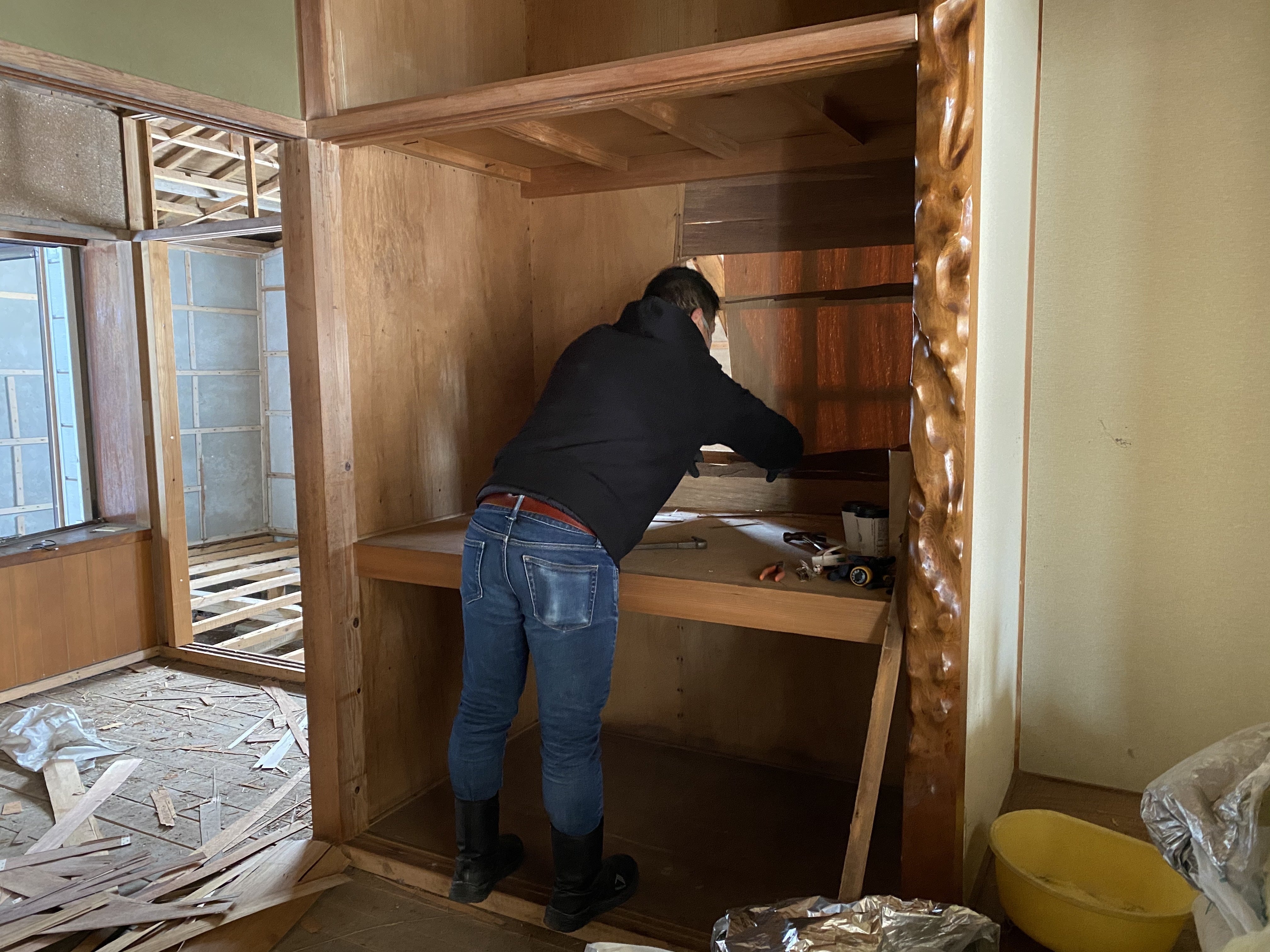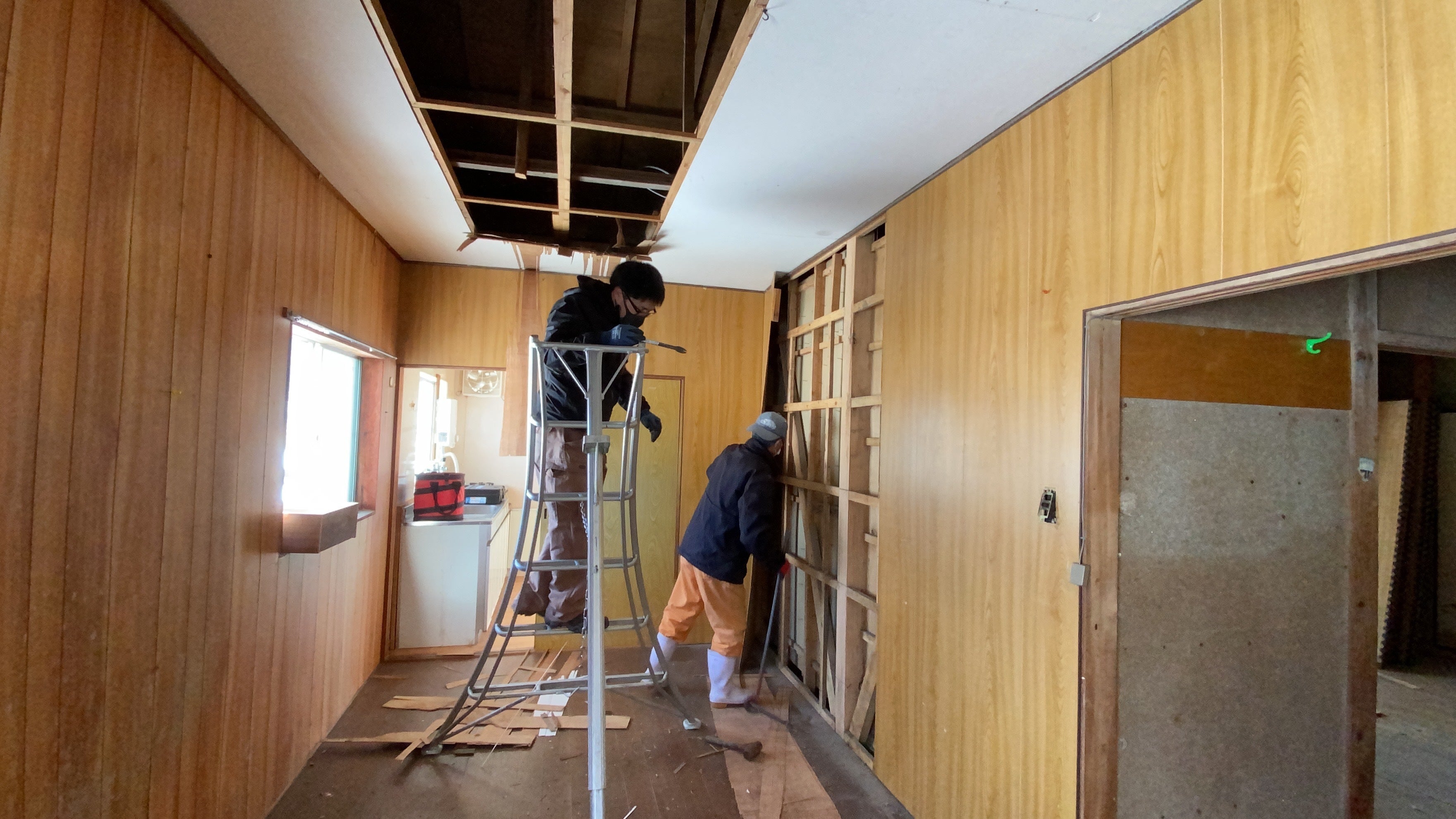私を含めたスタッフ3人と助っ人お父さんで解体作業
