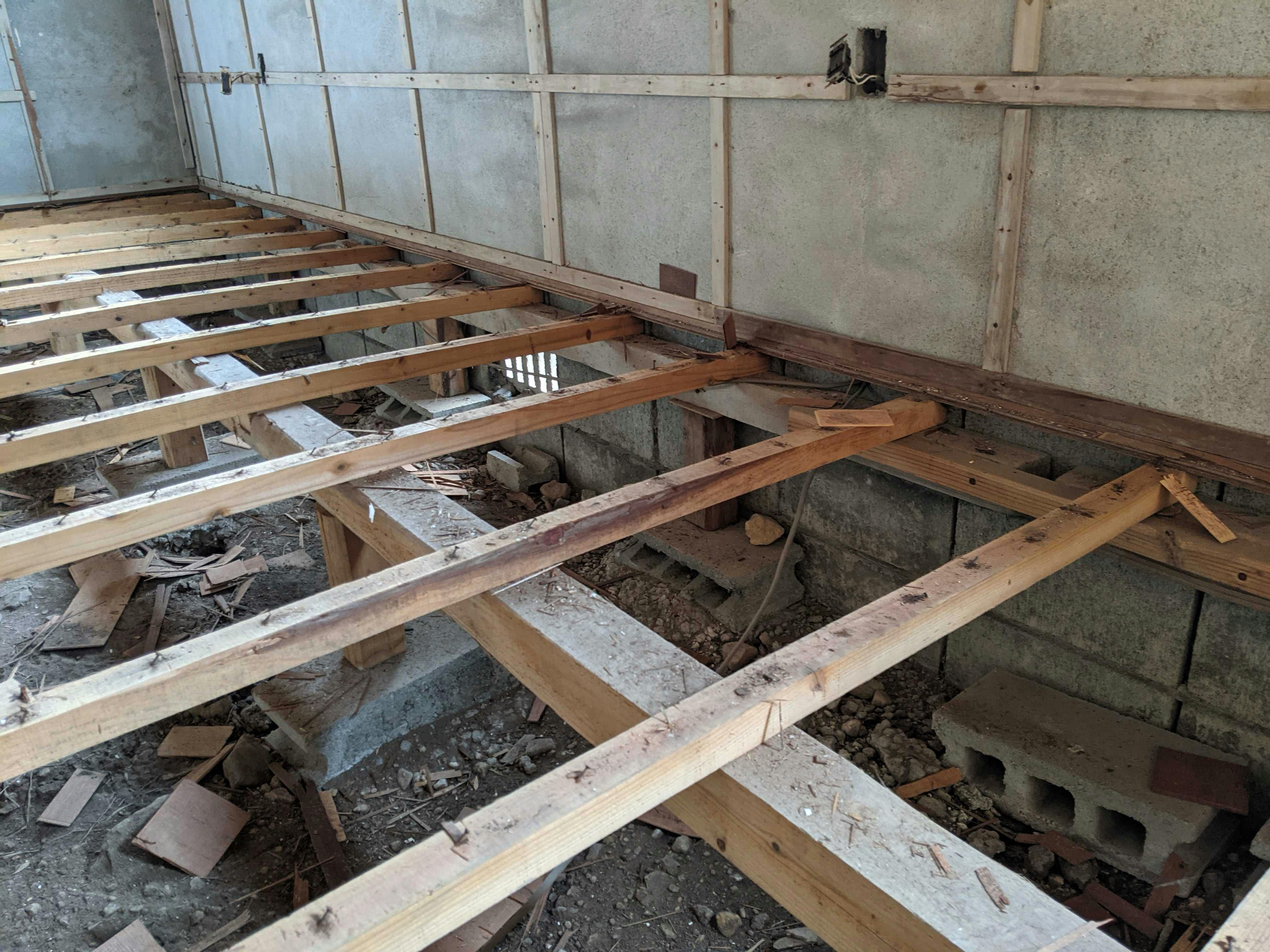 ボロボロだった床、古い壁、汚れた畳をすべて撤去!