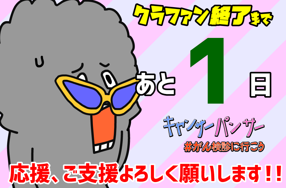 後2時間でクラファン 終わります!最後までありがとうございます!!!でもキャンサーパンサーは、一生終わらせません!ボクがクラファンで欲しかったモノボクがクラファンで欲しかったモノはライブ(過程)感です。世のエンタメを雑に二分すると文化系(静)と運動系(動)でボクは文化系(静)の方です。さらに雑にいうと文化系(静)は結果(作品)を見せるのが仕事で、運動系(動)は過程(試合)を見せるのが仕事です。文化系(静)の作品の特典についてるメイキング面白いでしょ?とか思うかもしれませんがアレは都度都度迎える着地点やディスカッション・ミーティングのいいところを編集してるから面白いのです。編集した時点で結果(作品)なのです。文化系(静)の見せるメイキング映像は、運動系(動)で言えば、練習やシステムの確認です。だから余すことなく見せたてらサボったり寝てたりお菓子食べてたり、脱線した話から戻ってこないとか...見せちゃいけないもの聞かせちゃいけないモノもいっぱいです。だから文化系(静)の多くは結果=作品を見せなくちゃなんも始まらないのです。そしてミスは命取りになります。運動系(動)の作品いわゆる試合は、あの優れた肉体から放たれるスーパープレイ。インターバル中に見せる闘志や隠しきれない苛立ちとかにも心躍ります。団体競技なら一丸となって勝利に進む姿で涙流せます。そしてミスも作品として成立します。しかも大体3時間あれば終わります。(クリケットは?とかは言わないで)格闘系なら10秒からせいぜい30分です。短い時間に一気に日頃の鍛錬が見せれるってうらやましい限りです!そして今回ボクはクラファンをして、3時間ではないけど、10日間でサクセスする過程を見せれたことが応援してくれた人にとっても喜ばせれたんじゃないかな?と思ったのです。応援してくれた人楽しかったですか?ボクはドキドキワクワクしながら30日間過ごせました。応援ありがとうございます!って声に出して言いたいのでスポーツマンな気分です!ちなみにエンタメの王様はボクは過程も結果も見せれる音楽家だと思っています。
