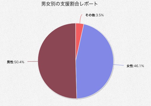 支援者の男女比がバランスよいので驚きます!支援ありがとうございます!