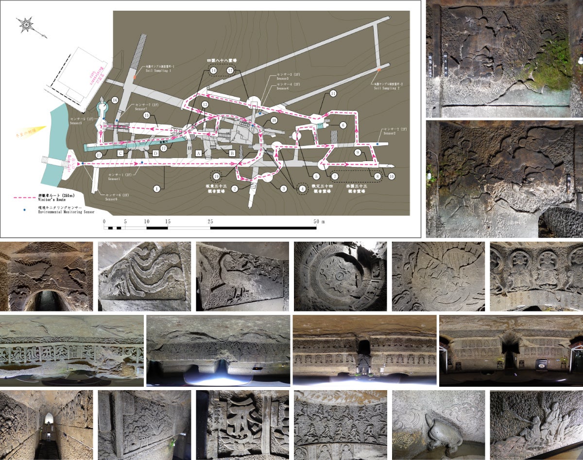 田谷の洞窟の見取り図とレリーフの例