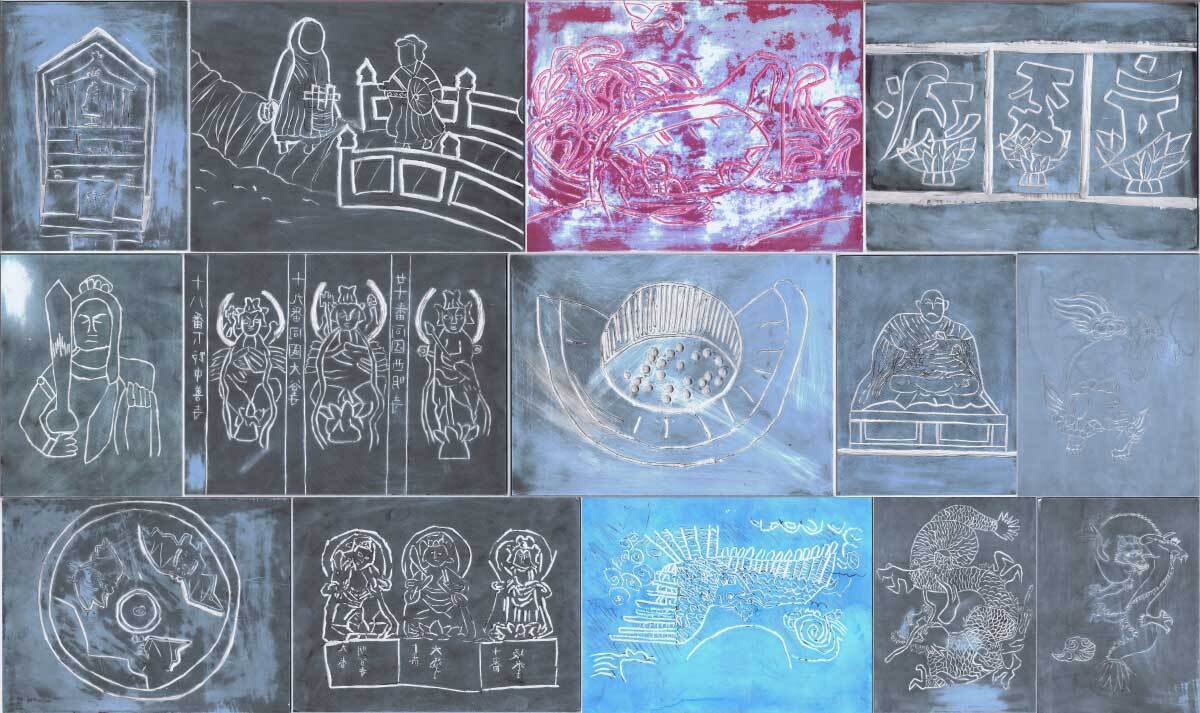 2020年度の6年生ともこのプロジェクトを進めていますが、新型コロナウィルス感染拡大を考慮し、今年度は模型制作を断念しました。そこで、担任の先生や研究者、及びアーティストの方々と知恵を絞り、児童たちと洞内レリーフの版画を制作し、洞窟の一般来訪者が洞内を拝観するときに手元でレリーフの詳細を知ることが出来る「洞内イラストガイドカード」を制作することになりました。