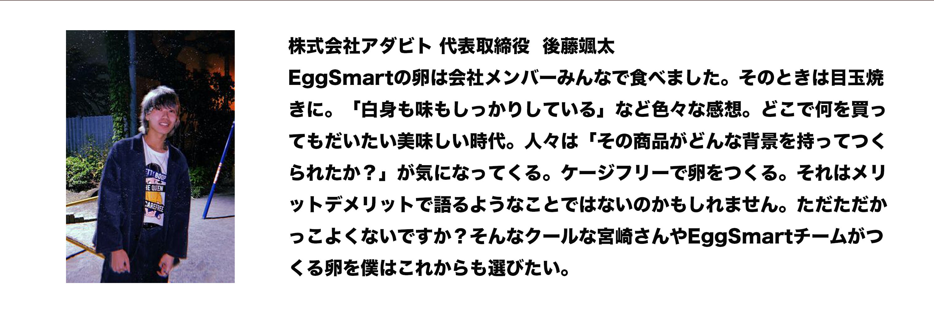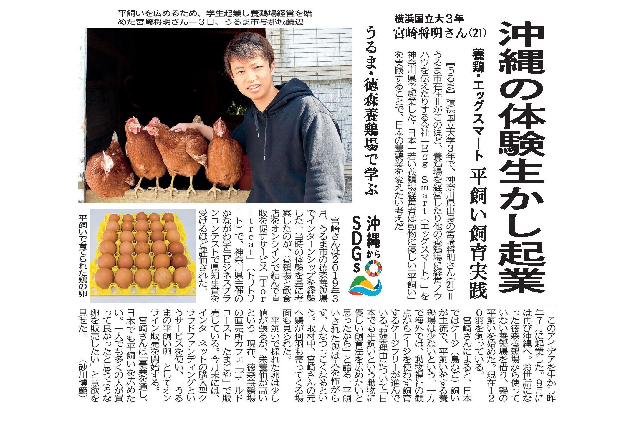 「うるまの平飼い卵」を生産するEggSmart株式会社の宮崎です。