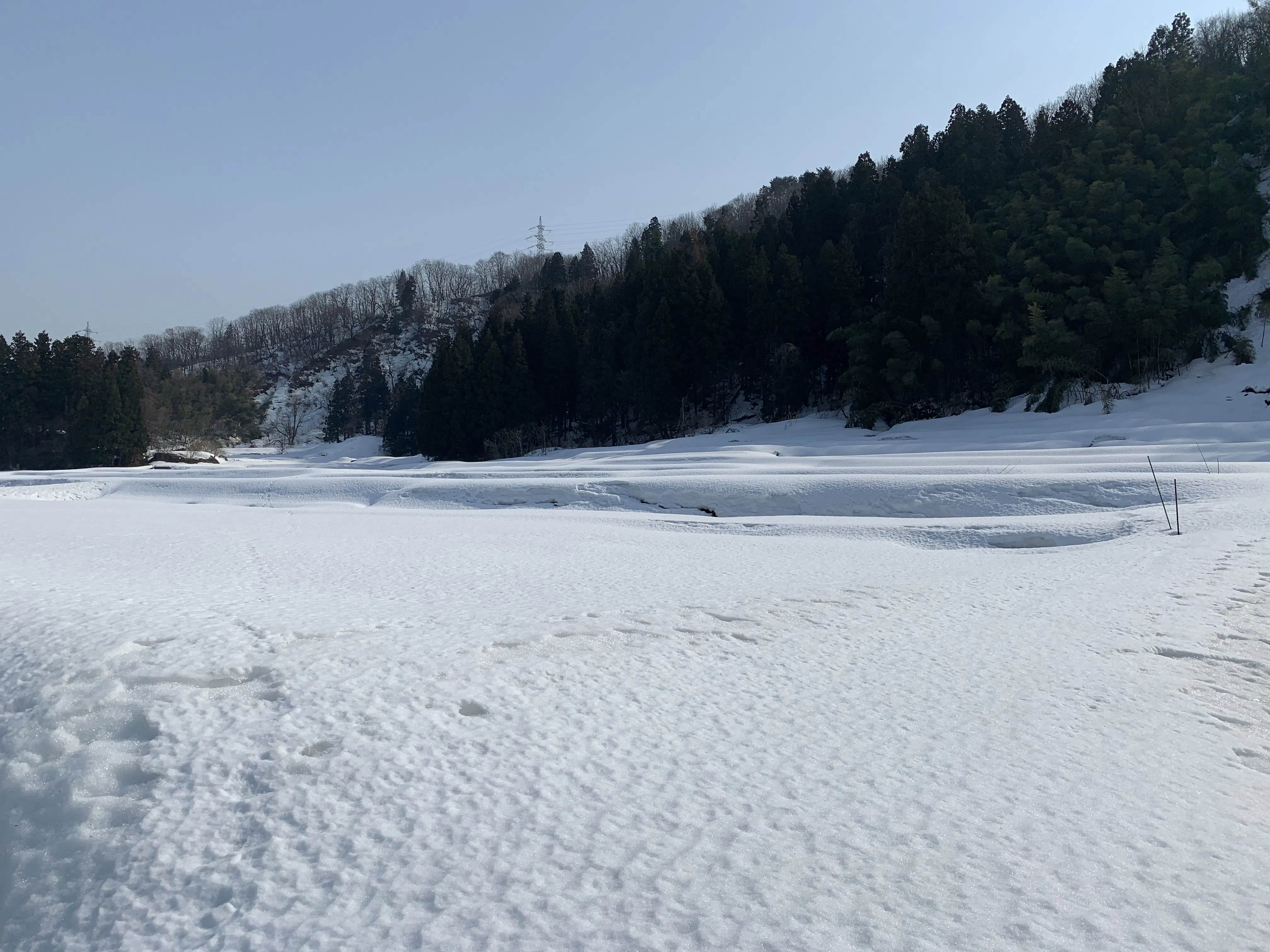 雪もこれで納まるか?と期待を込めて、本日は村づくりの場所一部の除雪と、棚田を行う場所の偵察に。