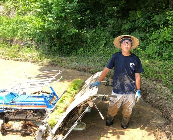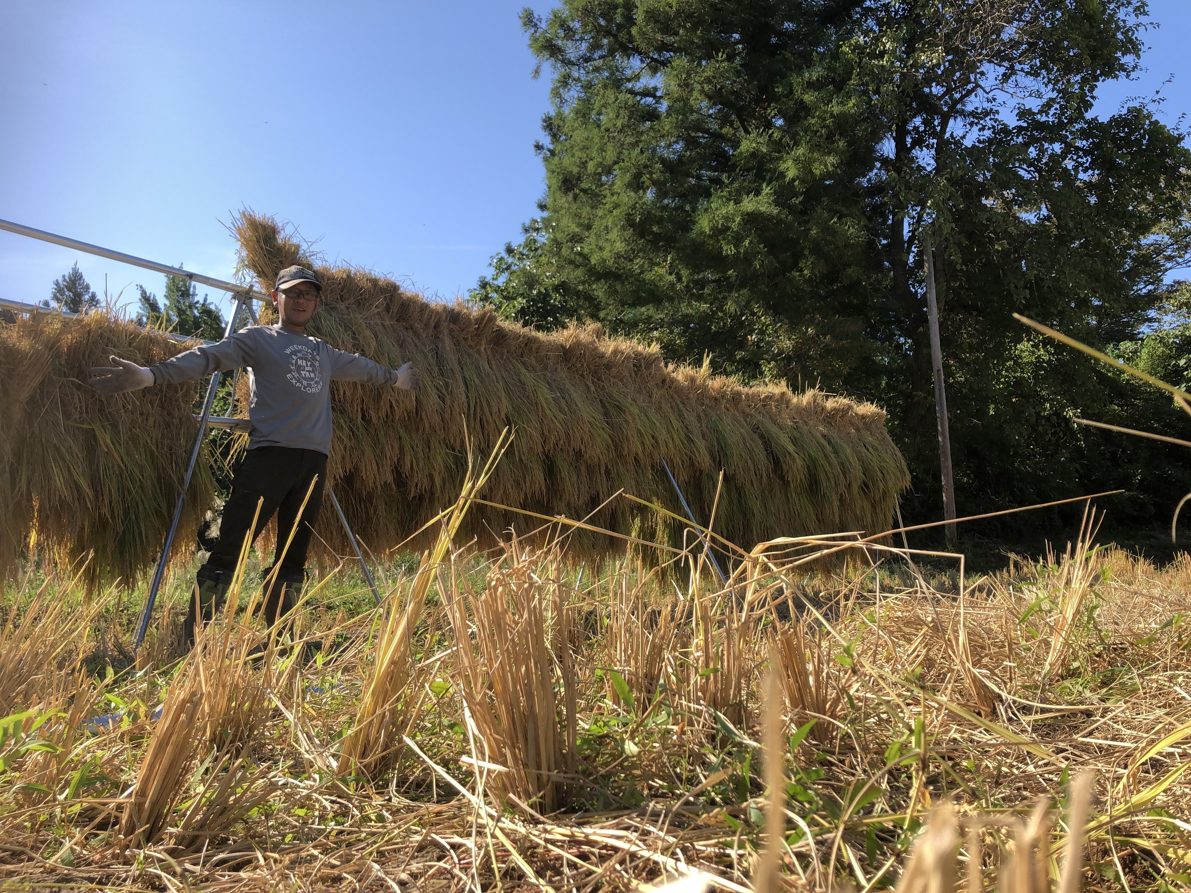 農業界を知る、経験値を積むために生産、販売、そして担い手に繋がることとして、小学生高学年を対象に食育を行ってきました。生産は主にお米。山奥で全て自分で工程を行い、はざかけ米も作りました。