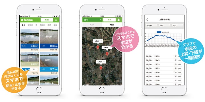 田んぼの水位センサー・注水状況を知らせる(画面はイメージ)